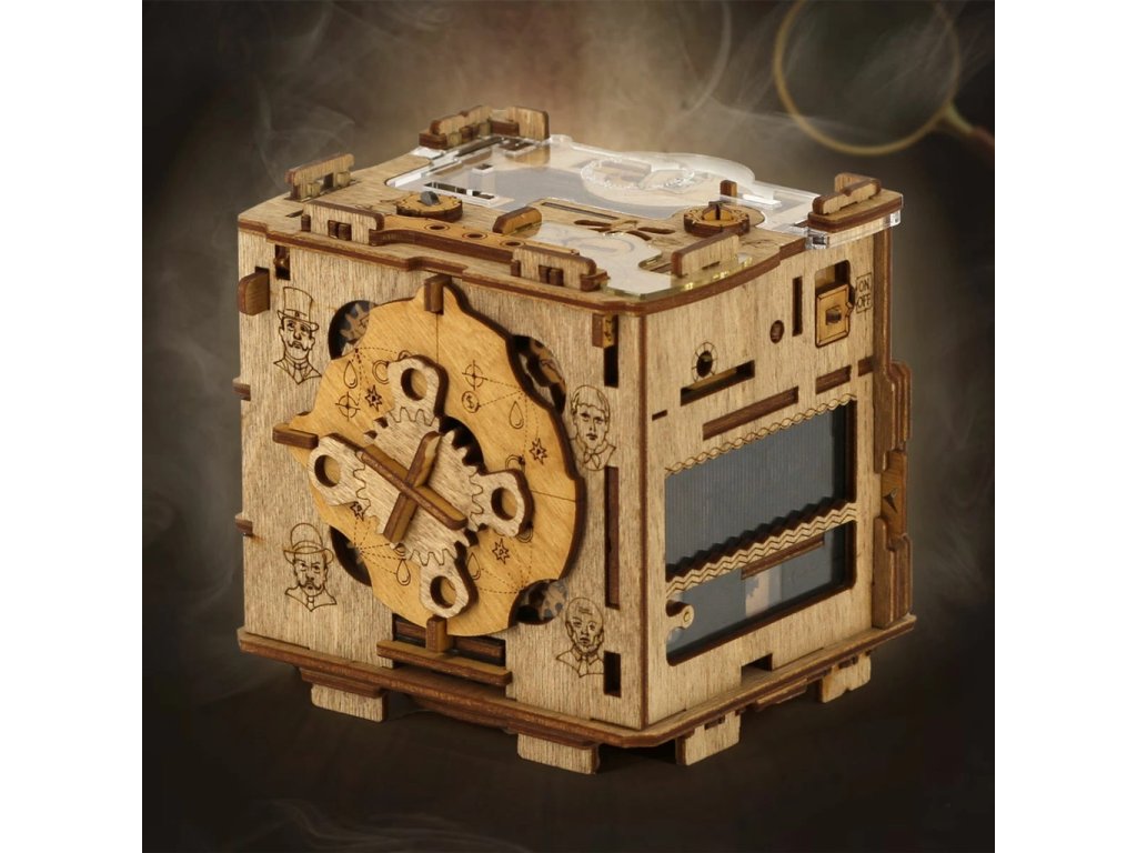 Už žádný nudný balící papír! Věnujte dárek s překvapením a zažijte strhující zábavu Chcete darovat peníze, šperk nebo jiný drobný dárek? A chcete předat dárek skutečně originálním způsobem? Spojte překvapení se zkouškou důmyslu a trpělivosti. S hlavolamem v inovativním designu vyrobeným z březového dřeva neuděláte chybu. Nenechte si ujít vzrušující zážitek ze hry. A nemusíte si hrát sami, zapojte celou rodinu nebo přátele. Hlavolam je pečlivě vyroben z přírodního materiálu a všechny jeho části byly přesně vyřezány nejlepší laserovou technologií. Příběh: Londýn 2023. Při inventarizaci v archivech Scotland Yardu byla objevena nevyzvednutá zásilka z roku 1914. Po rozbalení byl odhalen předmět připomínající fotoaparát. Kamera však místo běžného mechanismu obsahovala záhadné symboly a zámky. Byla přiložena následující poznámka:"Vážení detektivové,Během všech těch let jsem vyšetřoval ty nejzáhadnější případy. Nyní je čas, abych odešel do důchodu, a tak jsem se rozhodl svěřit své celoživotní dílo jednomu z Vás, nejtalentovanějšímu a nejschopnějšímu detektivovi. Nechávám vám tento svůj vlastní výtvor — fotoaparát se zašifrovaným mechanismem. Otevřete fotoaparát a zjistěte identitu mého nástupce!S pozdravemS.H."Zkoumání rukopisu a další spolehlivé důkazy pomohly určit, že zásilku neposlal nikdo jiný než Sherlock Holmes! Ve Scotland Yardu se nikomu nepodařilo vyřešit poslední detektivovu záhadu. Nyní vám předáváme záhadnou kameru. Jsme přesvědčeni, že se vám podaří vyřešit hádanku a odhalit identitu nástupce Sherlocka Holmese. Hlavní vlastnosti: doba hry 60-90 minuthra pro 1-2 hráčebox plný hádanek a rébusů vyrobeno ručně z přírodního dřeva součástí je dřevěný stativzabaleno v jedinečné dárkové krabičcelze použít opakovaněvhodné od 14 let VAROVÁNÍ! Níže uvedená videa obsahují spoilery řešení! Prosím, sledujte pouze první 2 minuty, pokud si chcete užít hádanku a vyřešit hlavolam sami.Doplňkové parametry