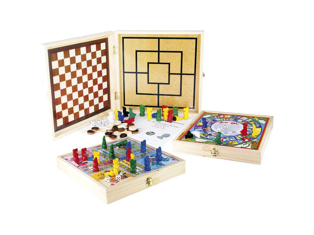 Soubor deskových a karetních her v uceleném praktickém balení. Naleznete zde dámu, mlýn, variantu člověče nezlob se s figurkami koní, husu a soubor obsahuje také balíček bridžových karet. Příslušenství ke hrám je společně s pravidly baleno v boxu, jehož plochy slouží jako herní desky. Hlavní vlastnosti:16 figurek koní, 6 figurek hus, 40 hracích kamenů, 5 kostek a 54 karetpraktické baleníDoplňkové parametry