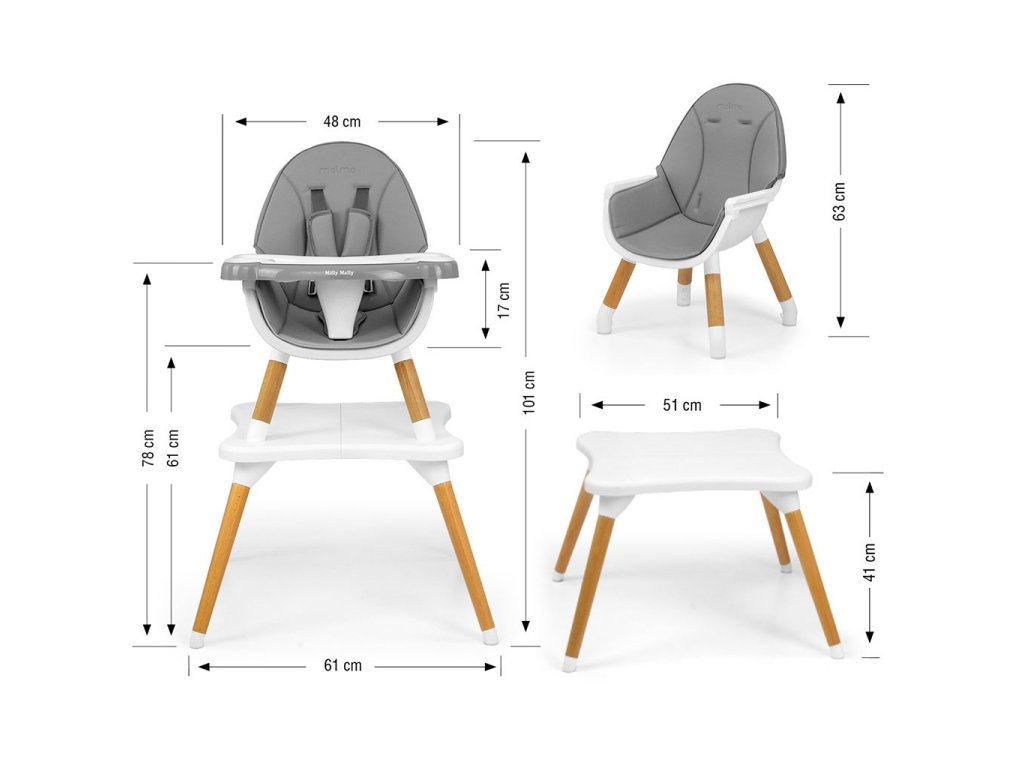 Jídelní židlička Milly Mally 2v1 Malmo šedá