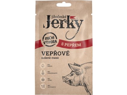 Jihočeské Jerky Vepřové s pepřem je poctivý sušený snack z české vepřové svaloviny. Jemné zauzení a černý pepř dodávají masu plnou chuť s pikantním nádechem. Ideální na cesty i...