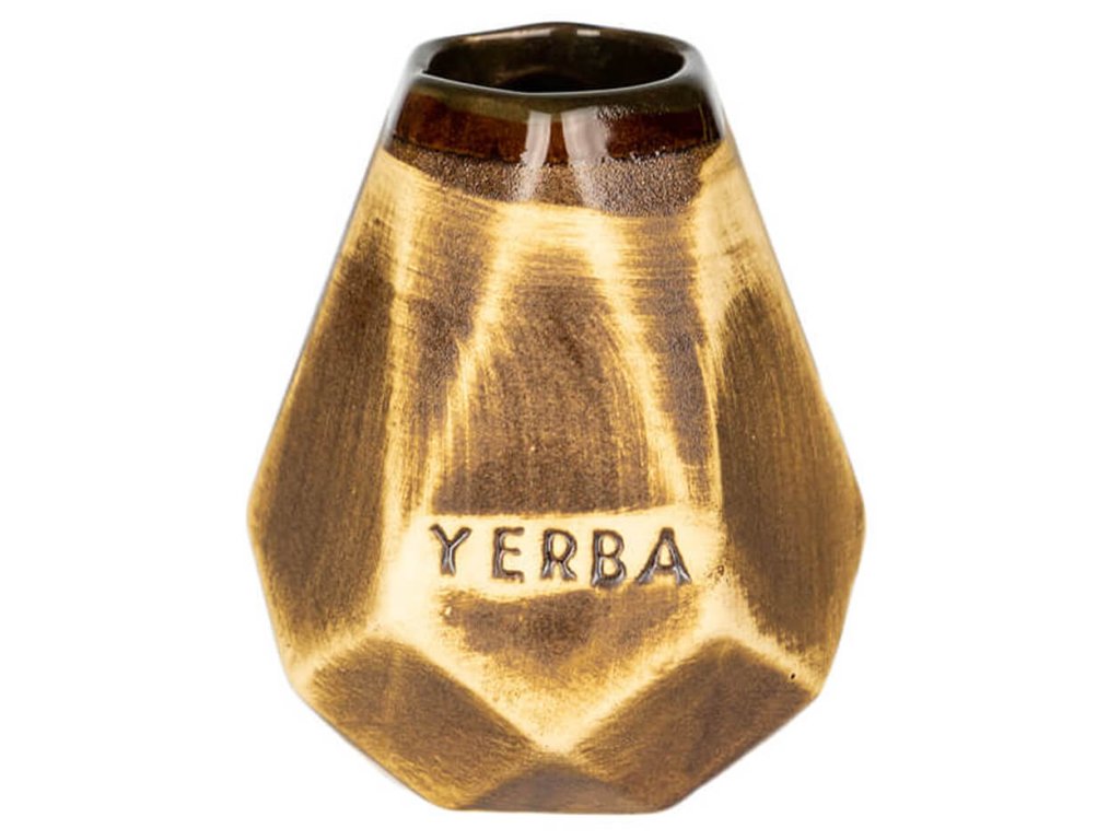 Keramická kalabasa hnědé barvy. Moderní geometrický tvar. Výhodou keramických kalabas je to, že se snadno udržují, neplesniví.