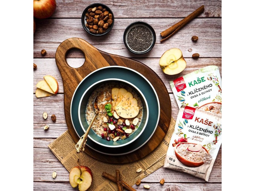 Klíčený oves a červená quinoa jsou díky klíčení lépe stravitelné než oves a quinoa nenaklíčená. Připravte si chutnou snídani nebo svačinu s obsahem betaglukanů. Ovesný betaglukan snižuje hladinu cholesterolu v krvi. Příznivého účinku je dosaženo na základě denního příjmu 3 g ovesného betaglukanu. Bílkoviny přispívají k růstu a udržení svalové hmoty a normálního stavu kostí.