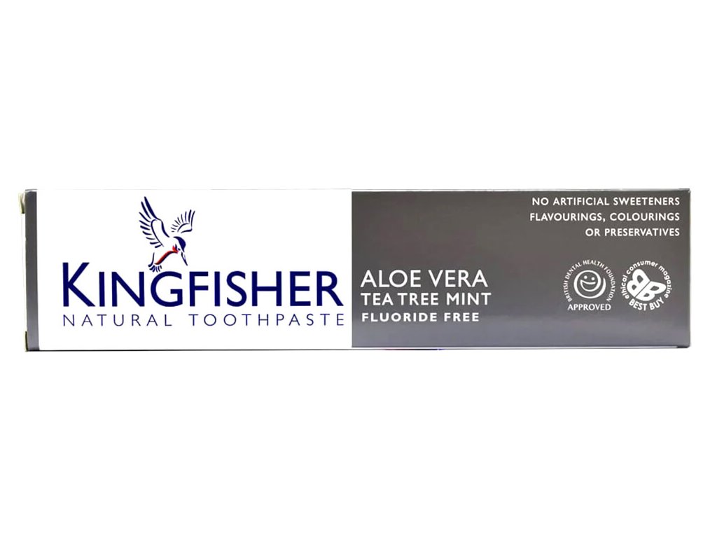 Zubní pasty od Kingfisher ze Spojeného Království jsou vhodné pro vegany, jsou bez alkoholu, neobsahují palmový olej, parfemaci, silikony a SLS či SLES. Značka se snaží minimalizovat dopad na životní prostředí.