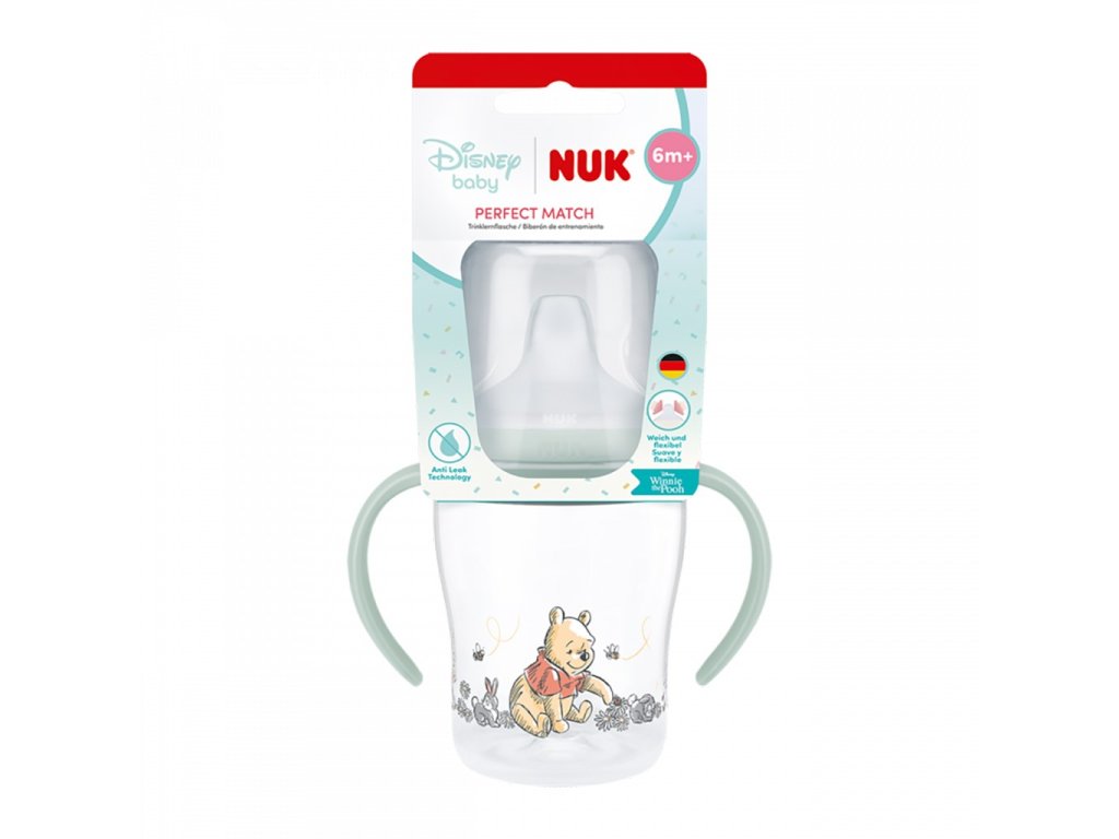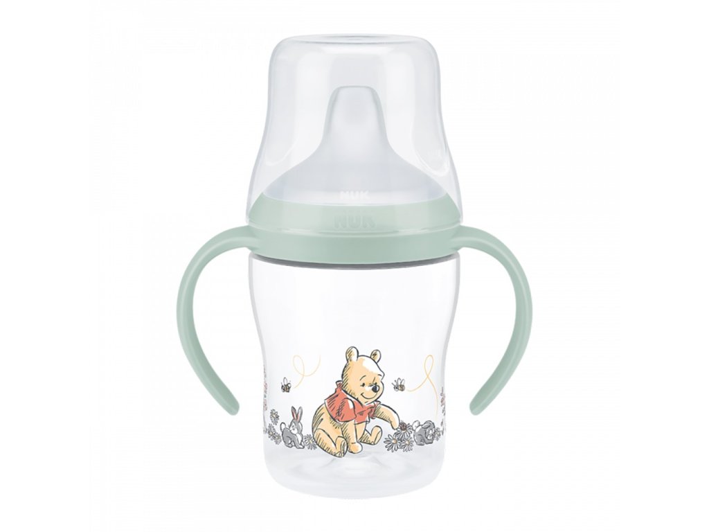 Lahvička na učení NUK Perfect Match Disney, pomáhá přirozenému přechodu z lahvičky na hrneček.