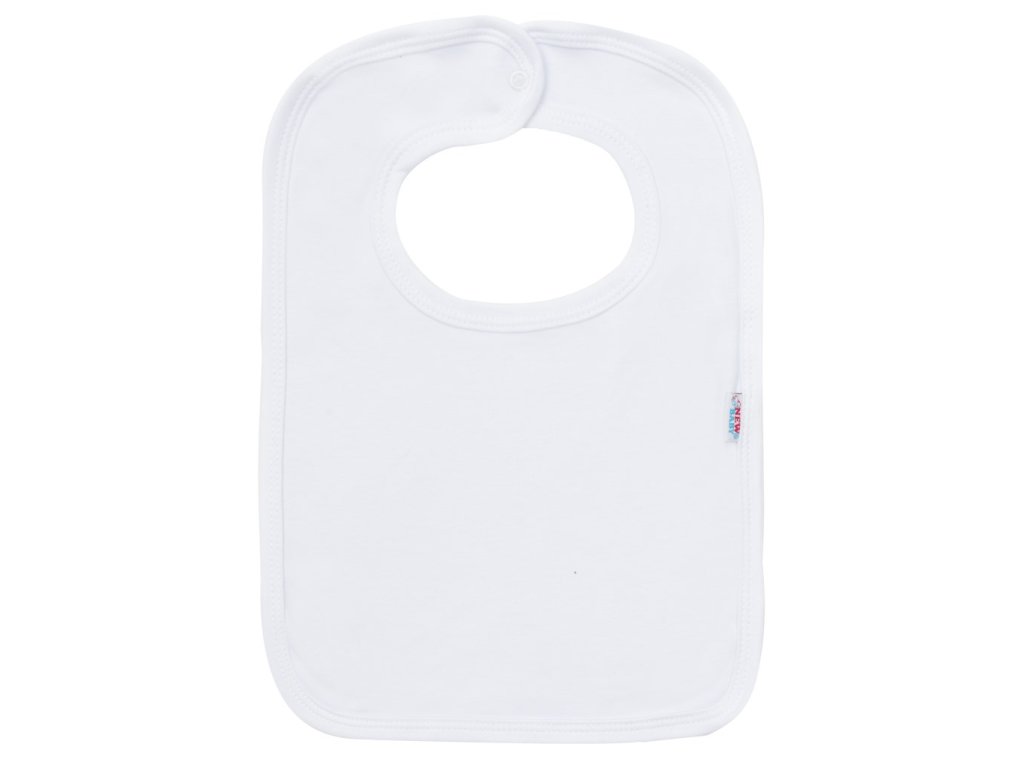 Bavlněný dětský bryndáček New Baby. Bryndáček má bílé lemování a je vyrobený ze dvou vrstev bavlněné látky. Zapínání na cvoček. Dětský bryndáček chrání oblečení miminka před znečištěním při jídle a pití. Složení: 100 % bavlna. Rozměry: dxš cca 36x26 cm.