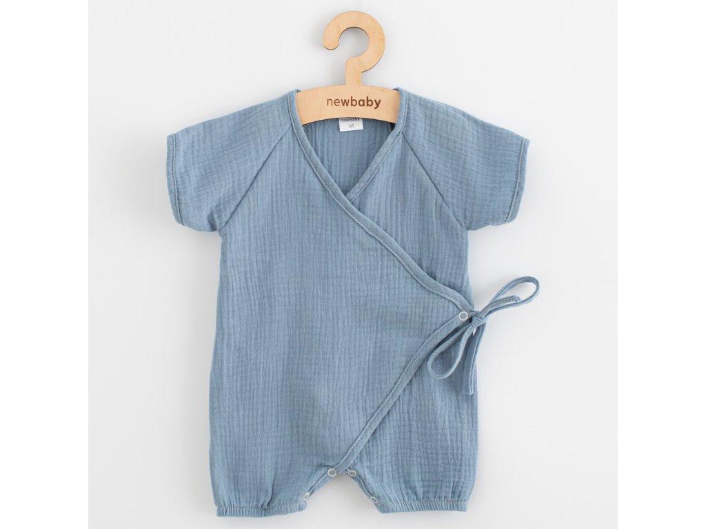 Stylový letní mušelínový overal s krátkým rukávem české značky New Baby. Zavinovací overálek s krátkým rukávem má praktické zavazování na boku na tkaničky, z vnitřní strany na cvoček a mezi nožičkama na cvočky což usnadní oblékání a přebalování. Na nohavičkách jsou jemné gumičky, které ale netlačí na nožičkách. Super stylový letní overálek rozzáří každé miminko.