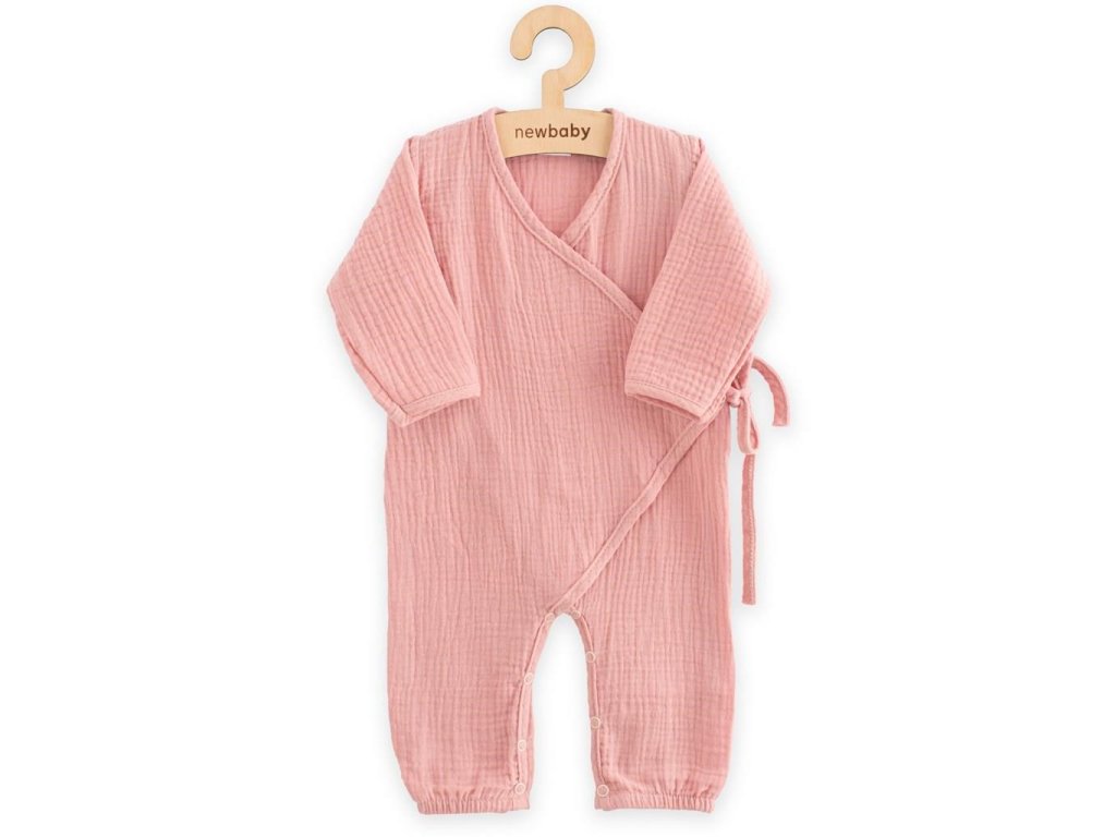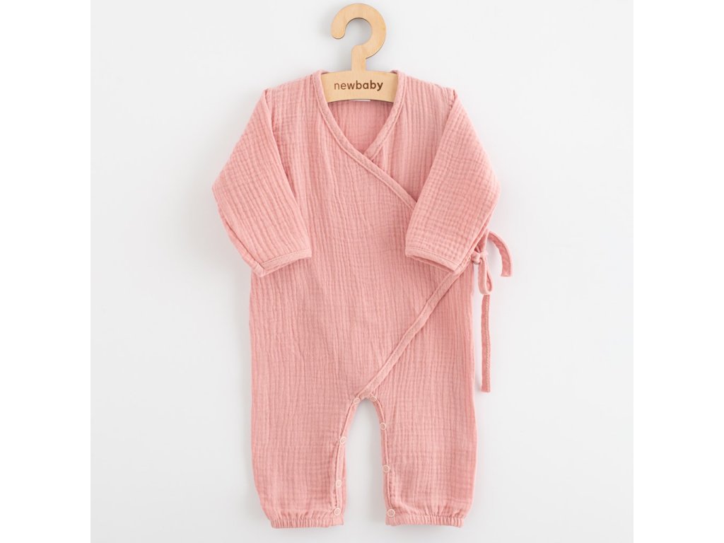 Stylový mušelínový overal s dlouhým rukávem české značky New Baby. Zavinovací overálek má praktické zavazování na boku na tkaničky, z vnitřní strany na cvoček a mezi nožičkama na cvočky což usnadní oblékání a přebalování. Na nohavičkách jsou jemné gumičky, které ale netlačí na nožičkách. Super stylový overálek rozzáří každé miminko.