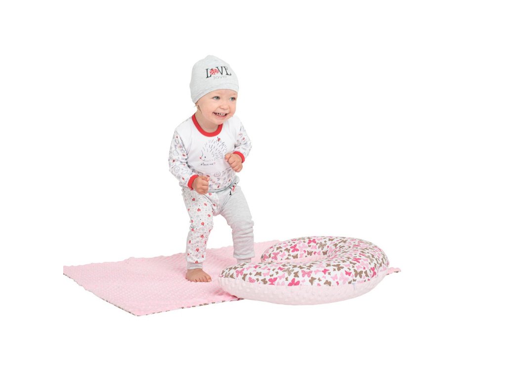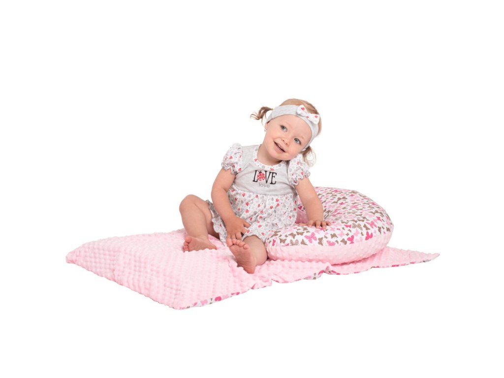 Kojící polštář New Baby pro pohodlné uložení kojence během kojení. Kojící polštář je vyroben ze dvou typů tkanin. První je velmi měkká a na dotek příjemná, hebká Minky látka s výstupky pro stimulaci senzomotoriky a druhá je 100% bavlna s originálními obrázky a vzory, které pomáhají dětem učit se nové věci a rozvíjet jejich fantazii. Polštář chrání páteř matky proti přetěžování a je prevencí bolesti zad. Materiál: svršek – 100% bavlna, 100% polyester, výplň – 100% polyester. Délka po obvodu cca 125 cm, průměr cca 16 cm. Polštář má snímatelný potah.
