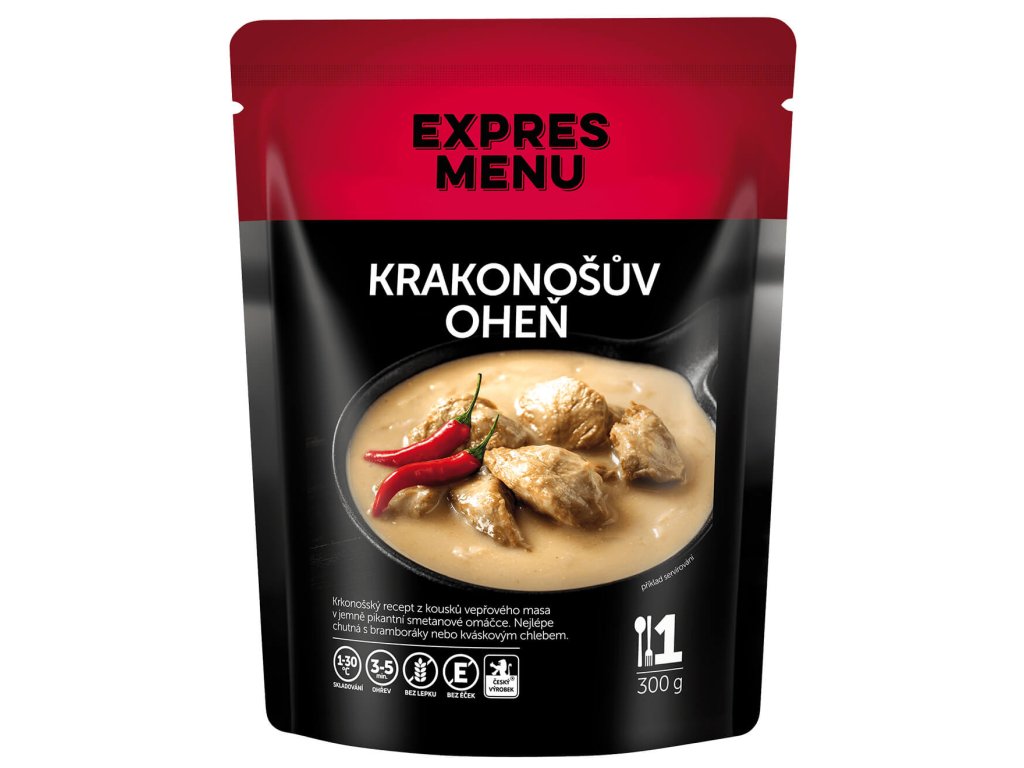 Tradiční recept z Krkonoš je připravený z kousků vepřového masa s jemně pikantní smetanovou omáčkou, ke které se nejlépe hodí bramboráky nebo kváskový chléb. Z jednoho balení připravíte 1 porci. Vhodné pro Low Carb.