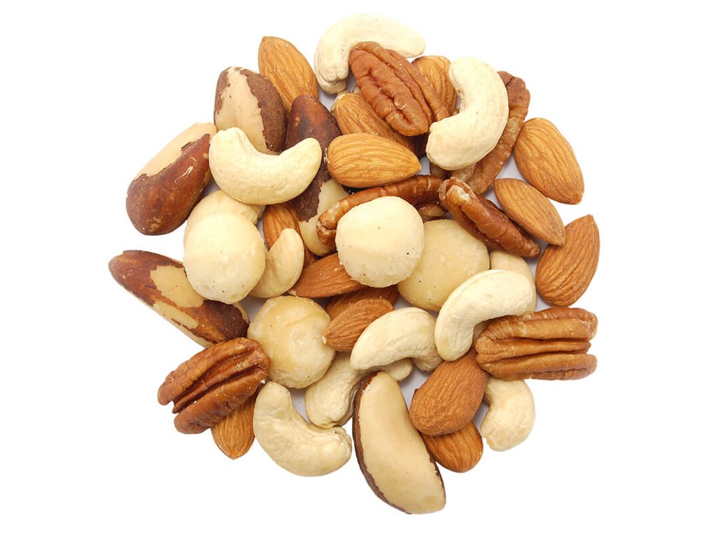 Jádra kešu ořechů natural W240, jádra sladkých mandlí natural NONPAREIL, jádra velkých makadamových ořechů natural (Austrálie), jádra para ořechů natural, pekanové ořechy natural