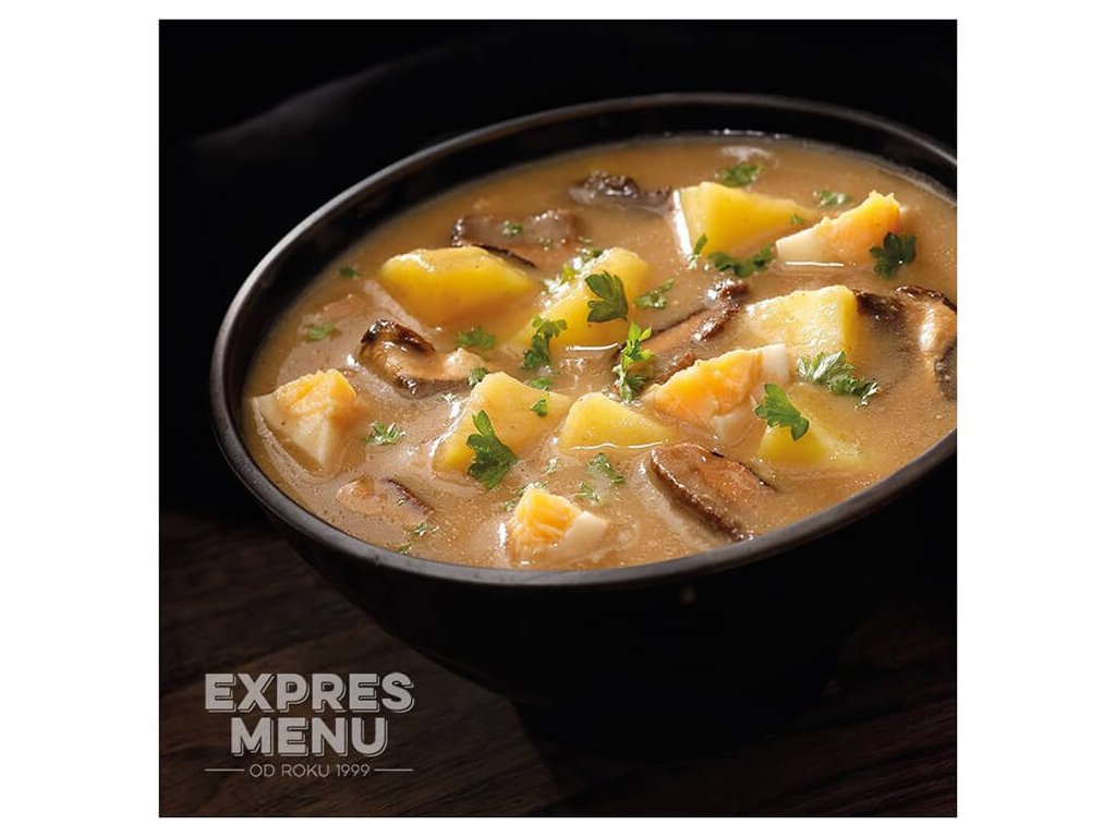 Voda, brambory (14,5%) , cibule, houby sušené ( 0,7% ), rýžová mouka, kukuřičná mouka, droždí ( 0,3% ), vejce, řepkový olej, kmín, sůl kamenná.