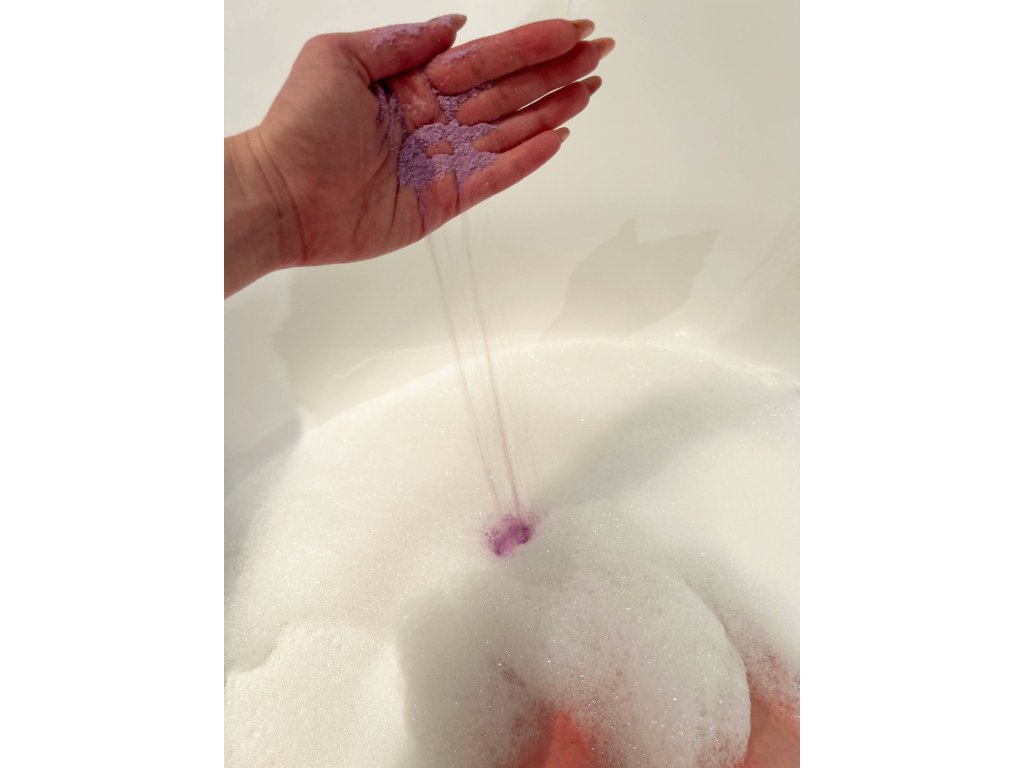 Složení: | Sodium Bicarbonate (soda bikarbona), Citric Acid (kyselina citrónová), Sodium Lauryl Sulphoacetate (jemný tenzid z kokosového oleje), Magnesium Sulphate Heptahydrate (epsomská sůl), Prunus Amygdalus Dulcis Oil (mandlový olej), Alkanna Tinctoria Root Powder (prášek z kořene Alkany barvířské), Lavandula Angustifolia Oil (esenciální olej Levandule), *Linalool. *vyskytuje se přirozeně v esenciálních olejích |