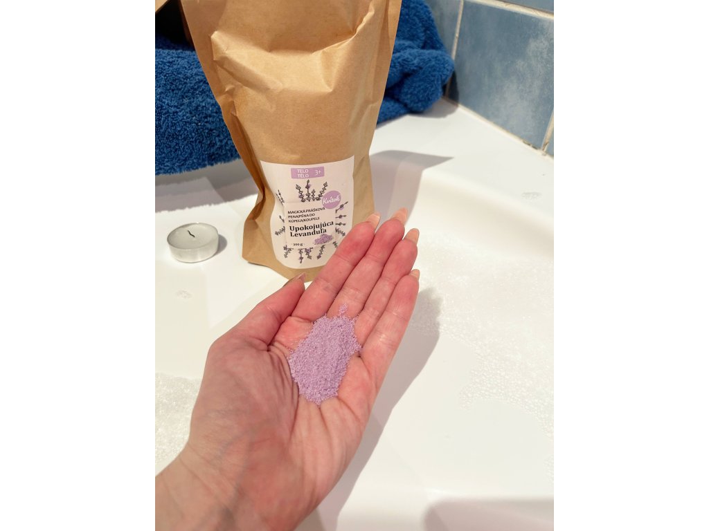 Magická pěna do koupele s vůní levandule v práškové formě vám umožní užít si relaxaci plnou jemných bublinek, které dlouho udržují vodu příjemně teplou. Obohacená o epsomskou sůl, jež poskytuje cenný hořčík, pomáhá odbourávat napětí, zatímco mandlový olej zanechá pokožku hebkou a hydratovanou. Pěna je opravdu bohatá a vydrží až překvapivě dlouho. Neobsahuje syntetické parfémy ani barviva, takže je vhodná pro vegany a citlivou pokožku.Doplňkové parametry