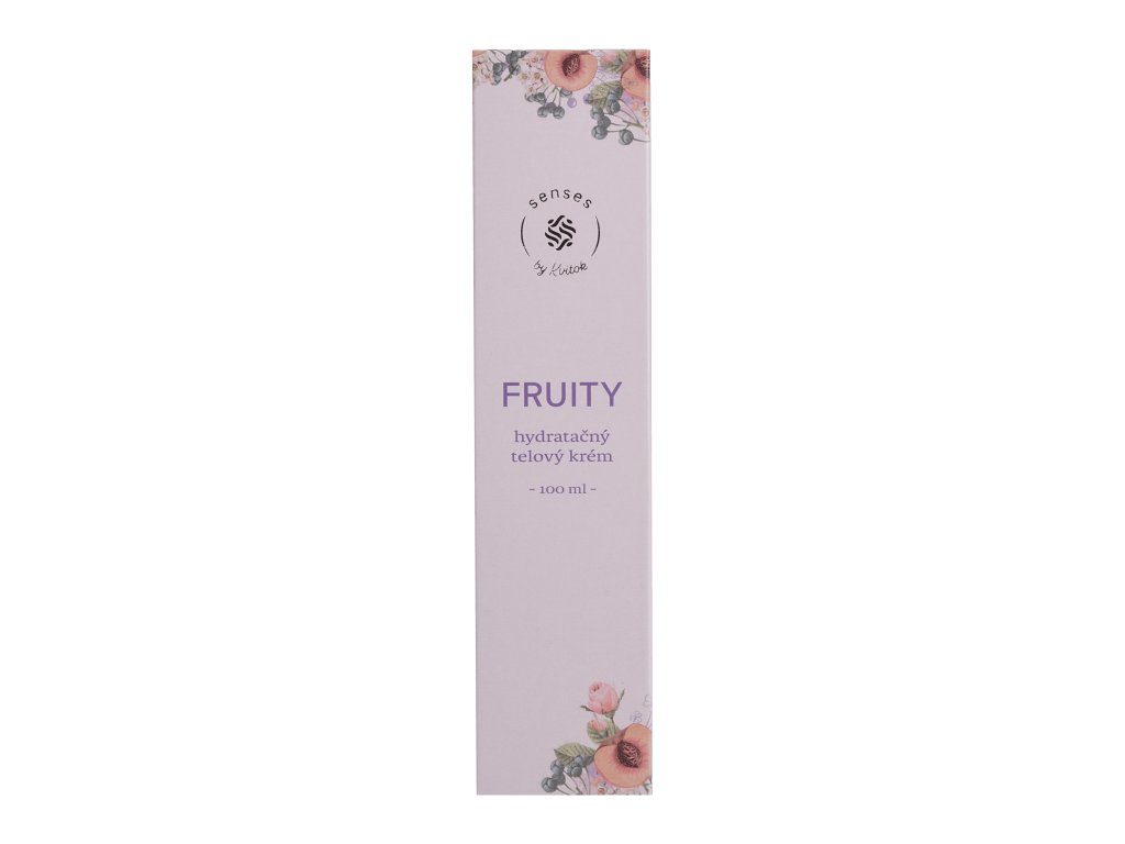 Lehký hydratační tělový krém Kvitok Senses Fruity s jemně ovocnou vůní rozmazlí pokožku pečlivou dávkou hydratace i výživy díky kombinaci dvou typů kyseliny hyaluronové a vzácných rostlinných olejů. Šťavnaté tóny malin a broskví se prolínají s vanilkovo-karamelovým základem, zatímco složení s levandulovou vodou, bambuckým máslem a přírodními antioxidanty udržuje pokožku jemnou, pružnou a chráněnou před vysušením. Krém se rychle vstřebává, nezanechává mastný film a krásně provoní celé tělo.Doplňkové parametry