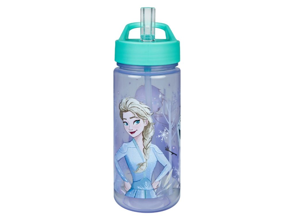 Plastová láhev na pití s motivem Ledového království s integrovaným brčkem a odklápěcím pítkem. Láhev je vyrobena z kvalitního, zdravotně nezávadného materiálu.Doplňkové parametry