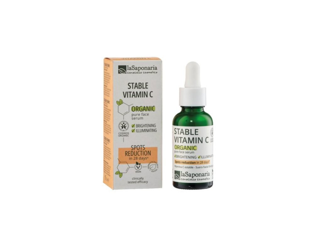 Bio pleťové sérum od laSaponaria s vitamínem C poskytuje pleti svěžest, rozjasnění a sjednocený tón. Jeho intenzivní antioxidační účinky efektivně působí proti volným radikálům, a tím zpomalují stárnutí pokožky. Sérum postupně zmírňuje viditelnost tmavých skvrn a díky stabilní formě vitaminu C je vhodné pro použití kdykoliv během dne, dokonce i v létě. Textura bez olejů si vás získá svojí lehkostí, absencí parfemace a certifikací Cosmos Organic potvrzující čistotu a přírodní původ.Doplňkové parametry