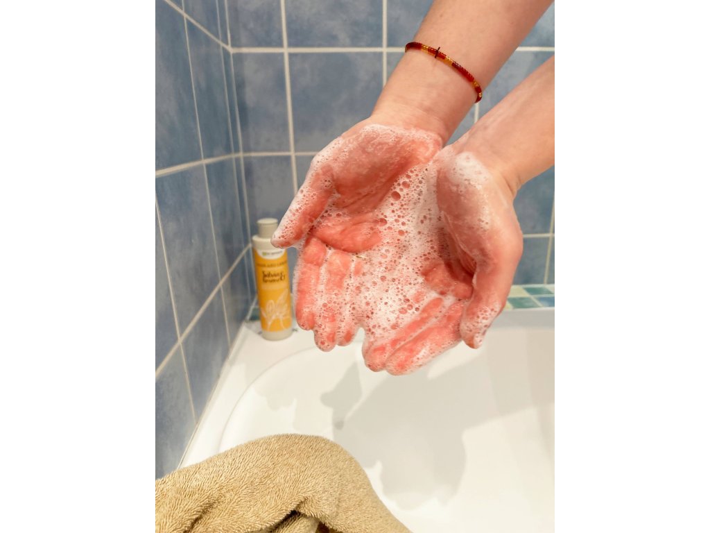 Na mytí vlasů použijte malé množství šamponu naředěné vodou v poměru 1:3.