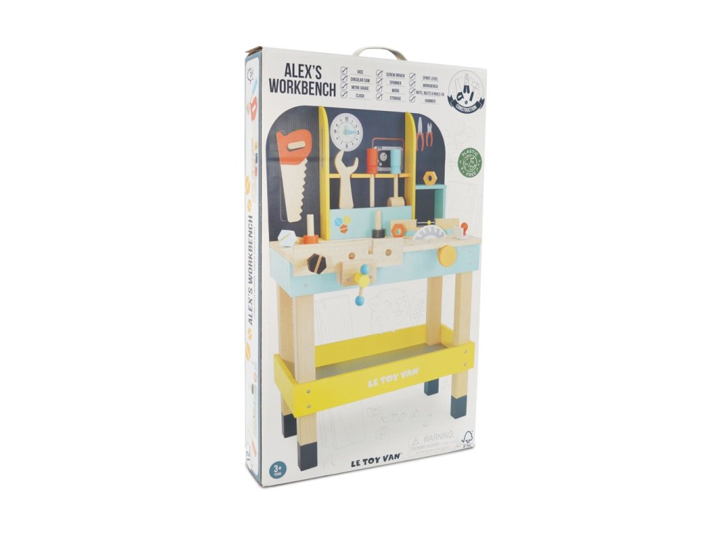 Připravte se na eko zábavu s nářadím. Robustní ponk vás opravdu překvapí, je to produkt, který vyhrál mnoho ocenění. Tato pestrobarevná hračka je vyrobena z odolného a udržitelného kaučukového dřeva, je malována netoxickými barvami na bázi vody. V balení najdete 12 zavalitých dřevěných doplňků, které mají velikost tak akorát pro dětské ruce. Je to pilka, kladivo, šroubovák, klíč, vodováha, 2 šrouby, 2 vruty, 2 hřebíky a dřevěná destička.Realistický ponk, který si děti zamilují, má vestavěnou cirkulárku, měrku a také svěrák. Na zadní stěně najdete polici a háčky pro pracovní nářadí. Ve spodní části najdete další úložný prostor – pro všechny části, které potřebují opravit. Hračka je doplněna o poutavé ilustrace, představivá hra děti doslova pohltí. Hračky s účelemVšechny hračky firmy Le Toy Van jsou vyrobeny s cílem – aby dlouho vydržely. Designovány s láskou zkušenými řemeslníky za použití etických praktik a udržitelných materiálů, které jsou laskavější k naší planetě. Hlavní vlastnosti: vyrobeno eticky z udržitelného dřevatestováno dle nejpřísnějších standardůmalováno netoxickými barvami na bázi vodyinspiruje k představivé hřerozvíjí kognitivní dovednosti Ocenění hračky:Dadsnet Toy Silver Award 2020 Auta & stavby: Stavební a motorická kolekce Le Toy Van, která vyhrála mnoho ocenění. Přesněji prozatím přes 15 ocenění za představivá auta a stavební hračky. Podporují dětskou fantazii, jsou ideální k představivé hře, rozvíjí kreativitu a hravě zlepšují dětskou koordinaci ruka‑oko. Značka a certifikát FSC® (Forest Stewardship Council) zaručuje, že dřevo, ze kterého byl produkt vyroben, nebylo vytěženo nelegálně a pochází z lesů obhospodařovaných šetrným či přírodě blízkým způsobem, ve kterém jsou dodržovány přísné environmentální a sociální požadavky. Značka FSC® na výrobku znamená, že svým nákupem pomáháte chránit lesy a podporujete šetrné, odpovědné či přírodě blízké hospodaření, díky kterému jsou naše lesy stabilnější, zdravější, mají přirozenou druhovou skladbu a lépe odolávají negativním následkům klimatických změn.Doplňkové parametry