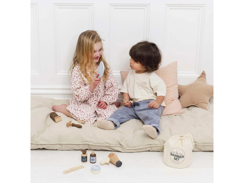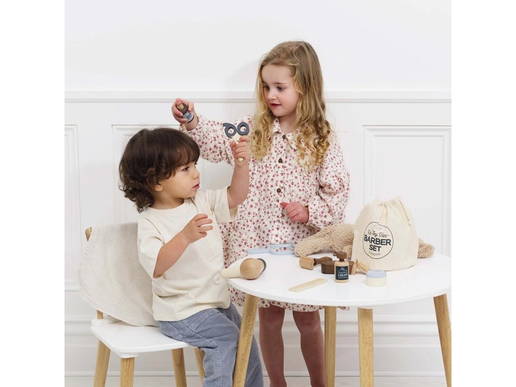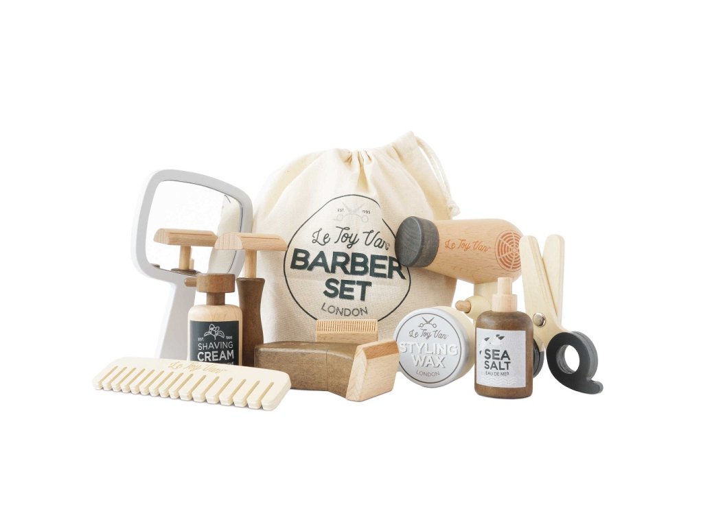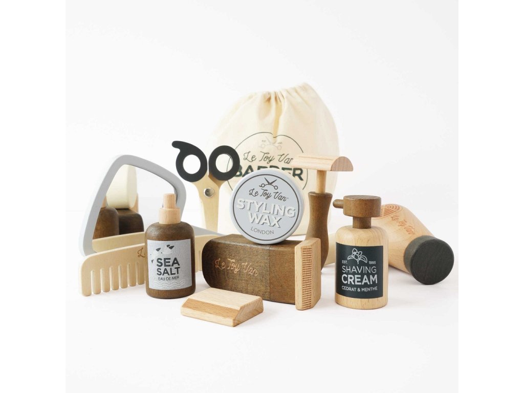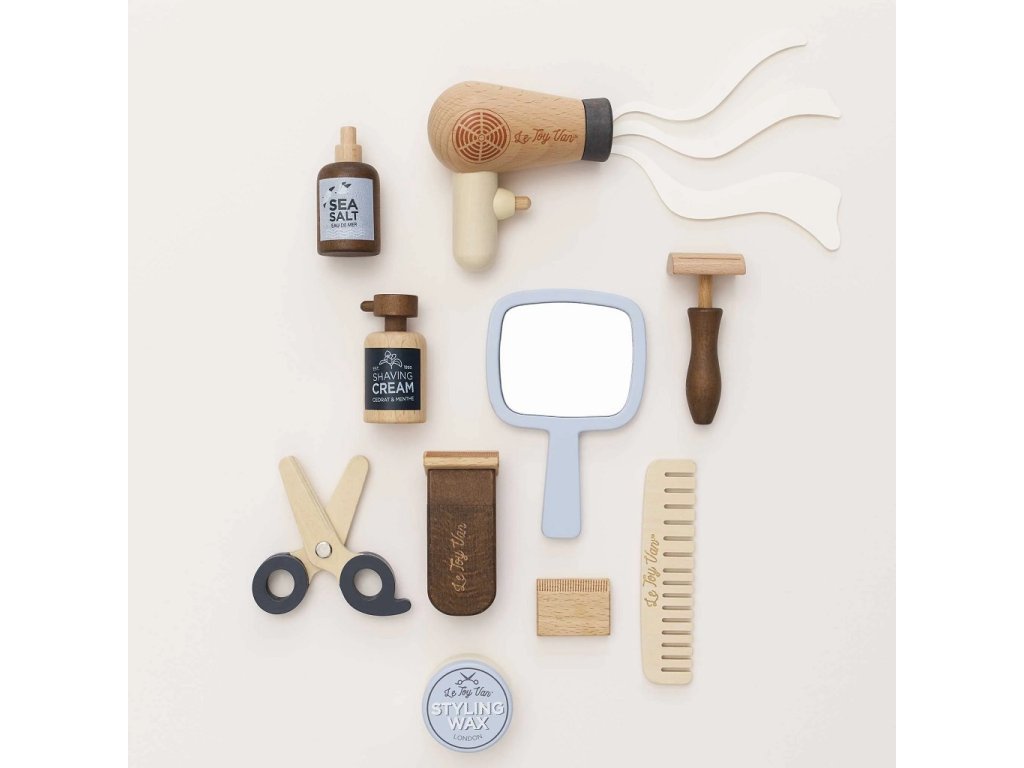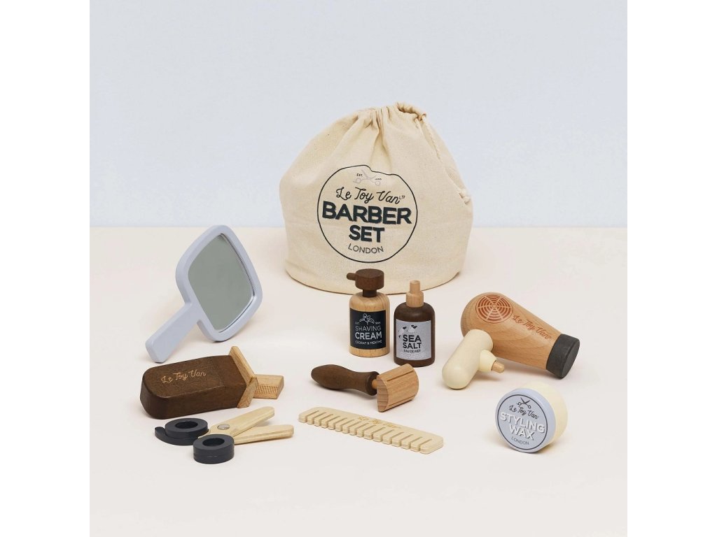 Pozor, všichni malí stylisté! Kadeřnická taška se stahovací šňůrkou je vyrobena z přírodní bavlny a obsahuje 10 kusů hladkého a zaobleného vybavení z certifikovaného dřeva FSC®. Všechny výrobky jsou ručně malovány netoxickými barvami a jsou odolné proti odštípnutí. Sada obsahuje hřeben, profesionální vysoušeč vlasů, nůžky, ruční zrcátko, zastřihovač vlasů s vyměnitelnými magnetickými čepelemi (magnety jsou pro bezpečnost dětí skryty), holicí strojek ve Vintage designu, lahvičku pěny na holení, kelímek na vosk a sprej s mořskou solí. Hračky s účelemVšechny hračky firmy Le Toy Van jsou vyrobeny s cílem – aby dlouho vydržely. Designovány s láskou zkušenými řemeslníky za použití etických praktik a udržitelných materiálů, které jsou laskavější k naší planetě. Hlavní vlastnosti: sada obsahuje 11 kusůbezpečnost testována na věk 3 let +vyrobeno eticky z udržitelného dřeva s certifikací FSC®testováno dle nejpřísnějších standardůmalováno netoxickými barvami na bázi vodyinspiruje ke kreativní a představivé hřerozvíjí zručnost, koordinaci a představivosthračka bez plastu Značka a certifikát FSC® (Forest Stewardship Council) zaručuje, že dřevo, ze kterého byl produkt vyroben, nebylo vytěženo nelegálně a pochází z lesů obhospodařovaných šetrným či přírodě blízkým způsobem, ve kterém jsou dodržovány přísné environmentální a sociální požadavky. Značka FSC® na výrobku znamená, že svým nákupem pomáháte chránit lesy a podporujete šetrné, odpovědné či přírodě blízké hospodaření, díky kterému jsou naše lesy stabilnější, zdravější, mají přirozenou druhovou skladbu a lépe odolávají negativním následkům klimatických změn.Diskuze