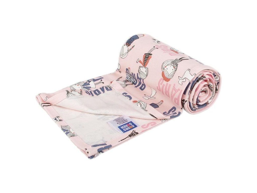 Lehká letní deka pro větší děti, deka je ze 100% bavlny, je růžová s motivem Paříže. Rozměr deky je cca 100 x 150 cm, lze prát na 40 °C. Česká výroba.