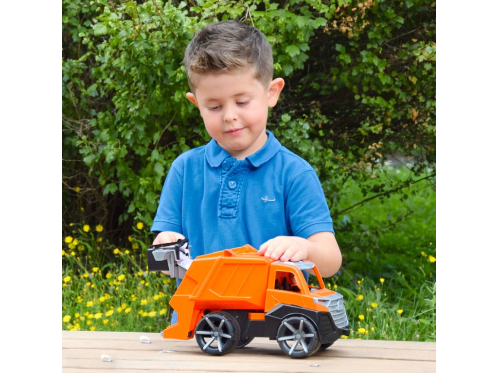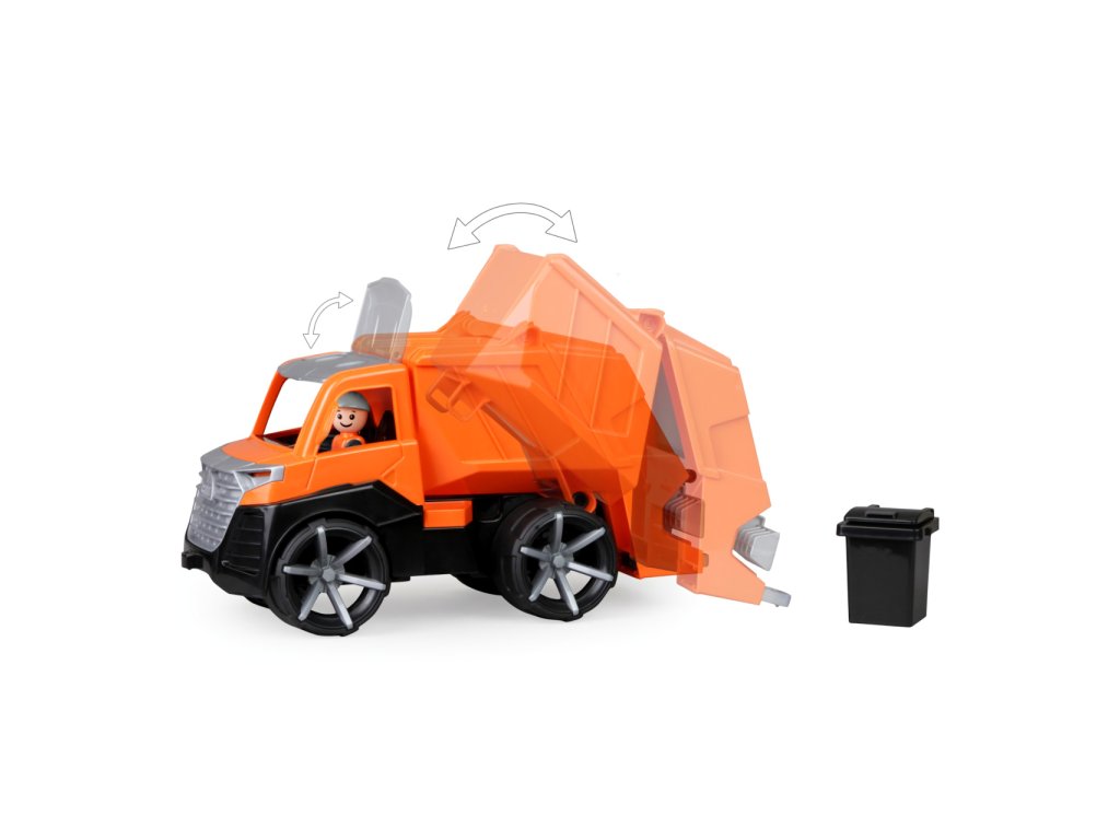Moderní autíčko ze série TRUXX 2 je velmi pevné a odolné, vhodné i ke hraní venku, na pískovišti. Je vybaveno figurkou usměvavého řidiče a díky odklopné střeše je prostor kabiny snadno přístupný hrám. Funkční, výklopná korba je opatřena pojistkou zamezující nechtěnému vysypání nákladu. Součástí autíčka je také volně uložená popelnice, kterou lze pomocí jednoduchého mechanismu realisticky vysypat do nákladového prostoru. Hračka je vyrobena z nezávadného plastu, dodávána v pestrobarevné krabici s průhledem. Hlavní vlastnosti:figurka řidiče, přístupná kabinavýklopná korba opatřená pojistkouvolně uložená popelnicepevné a odolné provedeníDoplňkové parametry