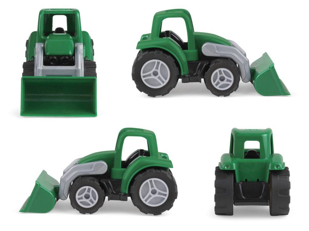 Tento krásný traktor je vyrobený z odolného ABS plastu s vysoce kvalitními pogumovanými koly. Má 4mm pozinkované ocelové osy. Lehce ručně ovladatelná radlice zajistí veselou nakládku a vykládku.