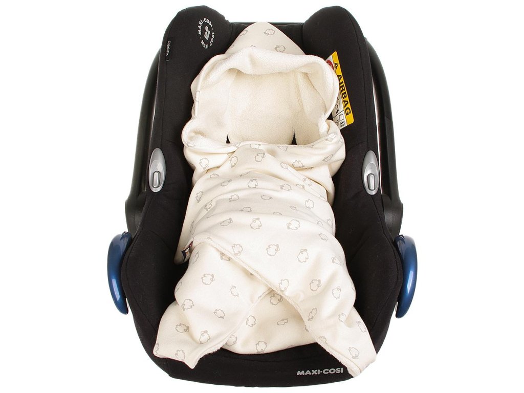 Letní zavinovačka do dětské autosedačky s tříbodovým zapínáním. Zavinovačka je s motivem beránků, je vyrobená ze 100% bio-bavlny, na dotyk je měkoučká a heboučká. Rozměr cca 75 x 75 cm, praní na 40 °C. Použití - vložit zavinovačku do autosedačky, otvory protáhnout bezpečnostní pásy, připoutat miminko, podle teploty zavinovačku zavinout a zapnout na suchý zip, nebo nechat otevřenou. Česká výroba.