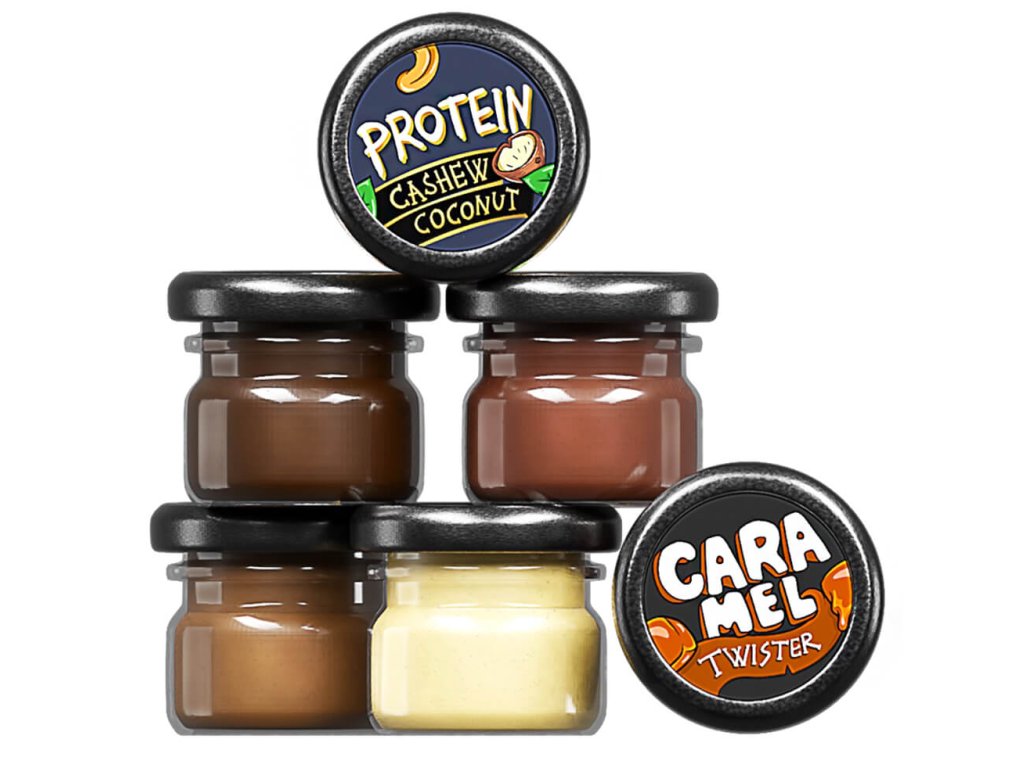 Obsahuje výběr ze všech kategorií od 100% KRÉMŮ přes MÍCHANÉ KRÉMY po TWISTERY a je ideálním pomocníkem pro někoho, kdo nevyzkoušel ještě žádnou příchuť a nemůže se rozhodnout, po čem sáhnout dřív. Nebo se hodí jako dárek pro ještě nezasvěcené "budoucí" milovníky ořechových krémů.