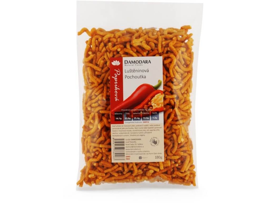 Základem těchto chipsů je hrachová mouka, která při zpracování ztrácí nadýmací schopnosti, tudíž nemusíte mít obavy z pocitu těžkosti a plynatosti po jejich požití. Skvělou výhodou tohoto výrobku je jeho široká škála použití. Pokud hledáte zavářku do nudlové polévky, papriková pochoutka je jasnou volbou. Zpestří obyčejný pokrm o novou chuť a konzistenci a navíc nevyžaduje žádnou další tepelnou úpravu, tudíž se nemusíte obávat zdlouhavého procesu u plotny.