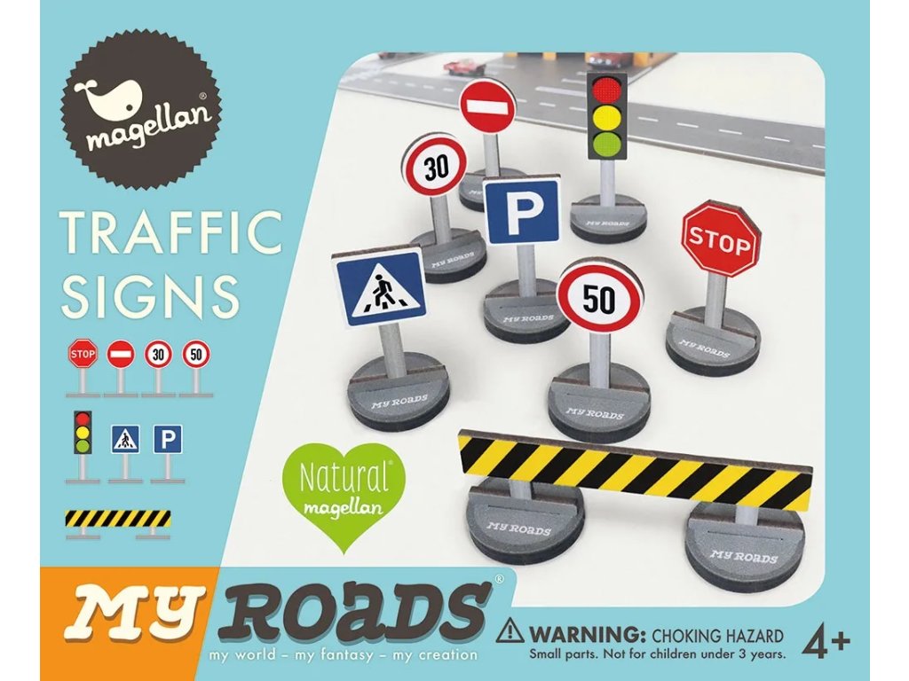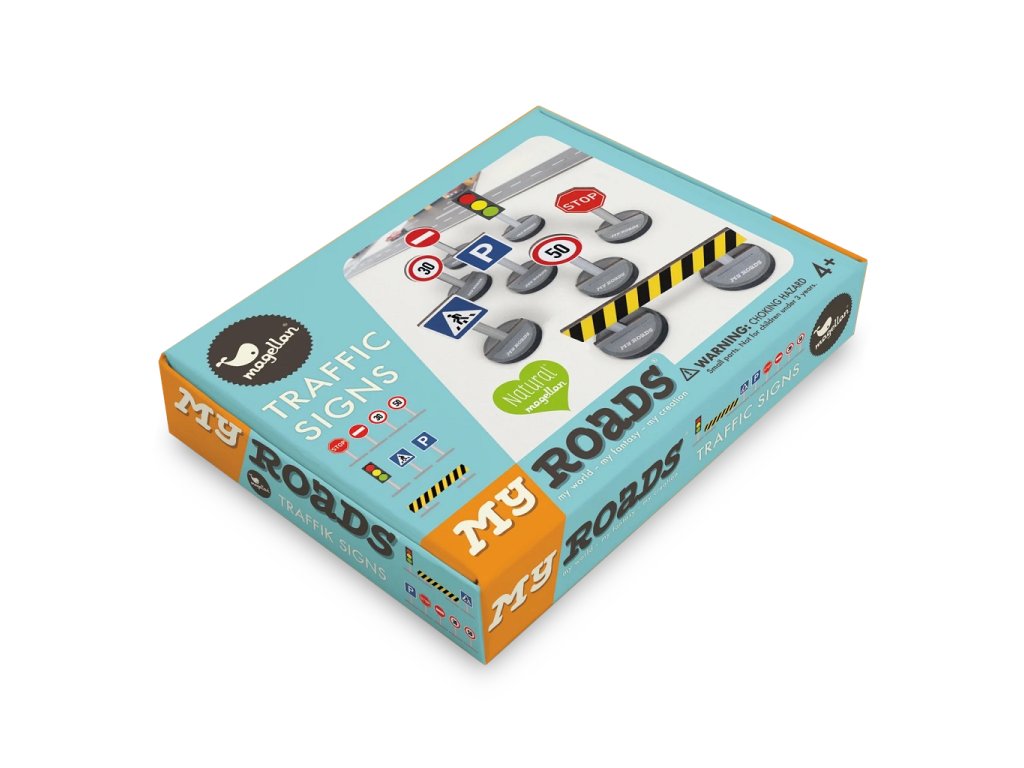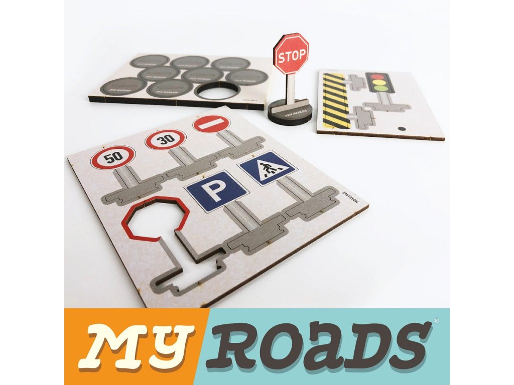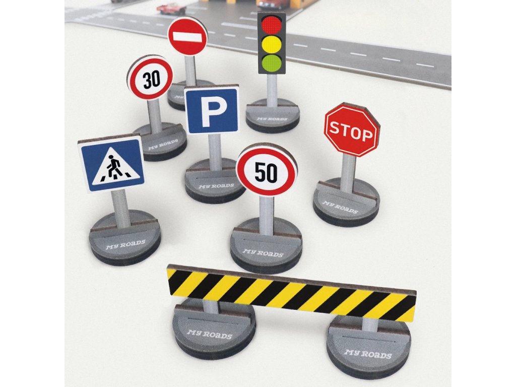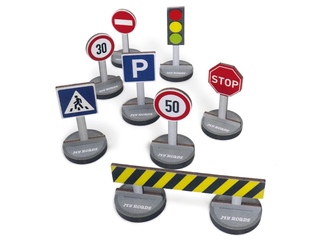 MyRoads je k životnímu prostředí šetrná hra z udržitelného, přírodního dřeva z odpovědných zdrojů. Dílky jsou vyrobeny německou společností Werkhaus. Spolu s MyRoads Starter sadou (zahrnující všechny druhy silnic), naleznete v této řadě spoustu doplňkových sad, jenž můžete jakkoli vzájemně kombinovat. Tato sada obsahuje 9 dopravních značek, jenž mohou sloužit jako doplněk k silnicím příslušné řady. Poznámka: Jelikož jde o výrobky z přírodního dřeva mohou vykazovat drobné barevné odchylky. Autíčka a silnice nejsou součástí balení. Hlavní vlastnosti: obsahuje 8 dopravních značek a 9 podstavcůkompatibilní se všemi produkty řady MyRoadspodporuje představivost, obratnost a koordinacivyrobeno z udržitelných a zodpovědně získaných přírodních materiálůDoplňkové parametry