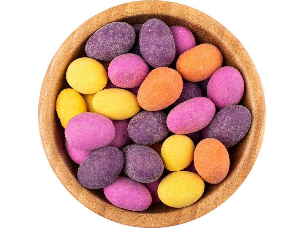 Ochutnejte naše barevné mandle v čokoládě - veselé mlsání pro každou příležitost. Nebo je zkuste jako zdravější alternativu čokoládových velikonočních vajíček. V balení objevíte chuť citronu, pomeranče, malin i borůvek.