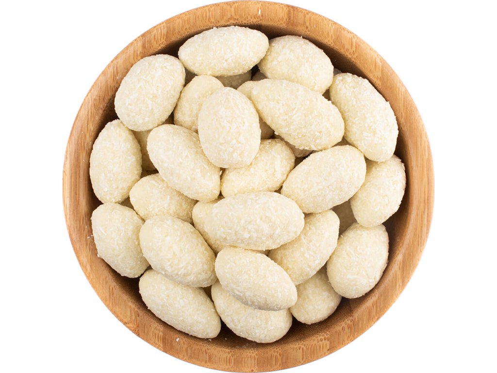 Mandle Raffaello jsou dokonalým ztělesněním luxusu a jemnosti v každém soustu. Tyto lahodné mandle jsou obalené v sametově bílé čokoládě, která se rozplývá na jazyku a vytváří harmonický kontrast s křupavým jádrem. Na povrchu je posyp z jemného strouhaného kokosu, který dodává delikátní exotický nádech.