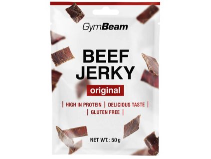 GymBeam Beef Jerky originál je kvalitní sušené hovězí maso s výraznou chutí a vysokým obsahem bílkovin. Praktická a výživná svačina na cesty, do práce i místo běžných snacků.