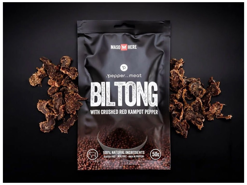 Sušený maso s jedním z nejlepších pepřů na světě? Proč ne! Pokud jsi někdy přemýšlel, jaký by to bylo dát si náš biltong s kampotským pepřem, tak už nemusíš. Tenhle hlavolam jsme za tebe vyřešili my v Maso Here ve spolupráci s Pepper teamem z Pepperfield.