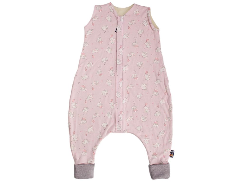 Nožičkový spací pytel s podšívkou z úpletu z merino vlny. Vnější strana je ze 100% bavlny s motivem růžových slonů. Délka spacího pytle je 90 cm - to je délka dítěte od ramen ke kotníkům. Zip umožní otevření spacího pytle po celé délce v obou směrech a má látkovou krytku, která zabraňuje přiskřípnutí krku do zipu. Nohavice jsou z merino vlny a je možné je překlopením uzavřít. Ruční praní do 30 °C, nebo jemné praní na vlnu při minimálních otáčkách. Nepoužívat aviváž! Česká výroba.