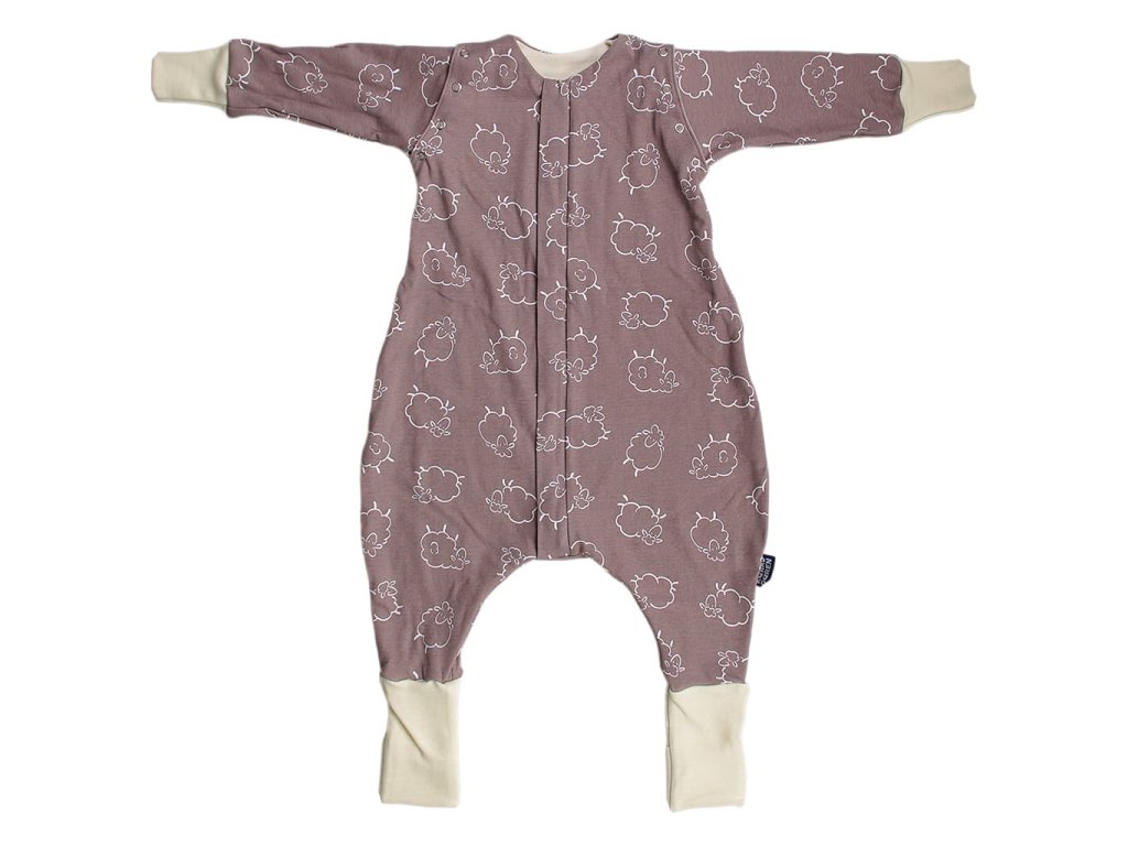 Merino spací pytel s nohavicemi a odepínacími rukávy – hnědé ovečky (80 cm)