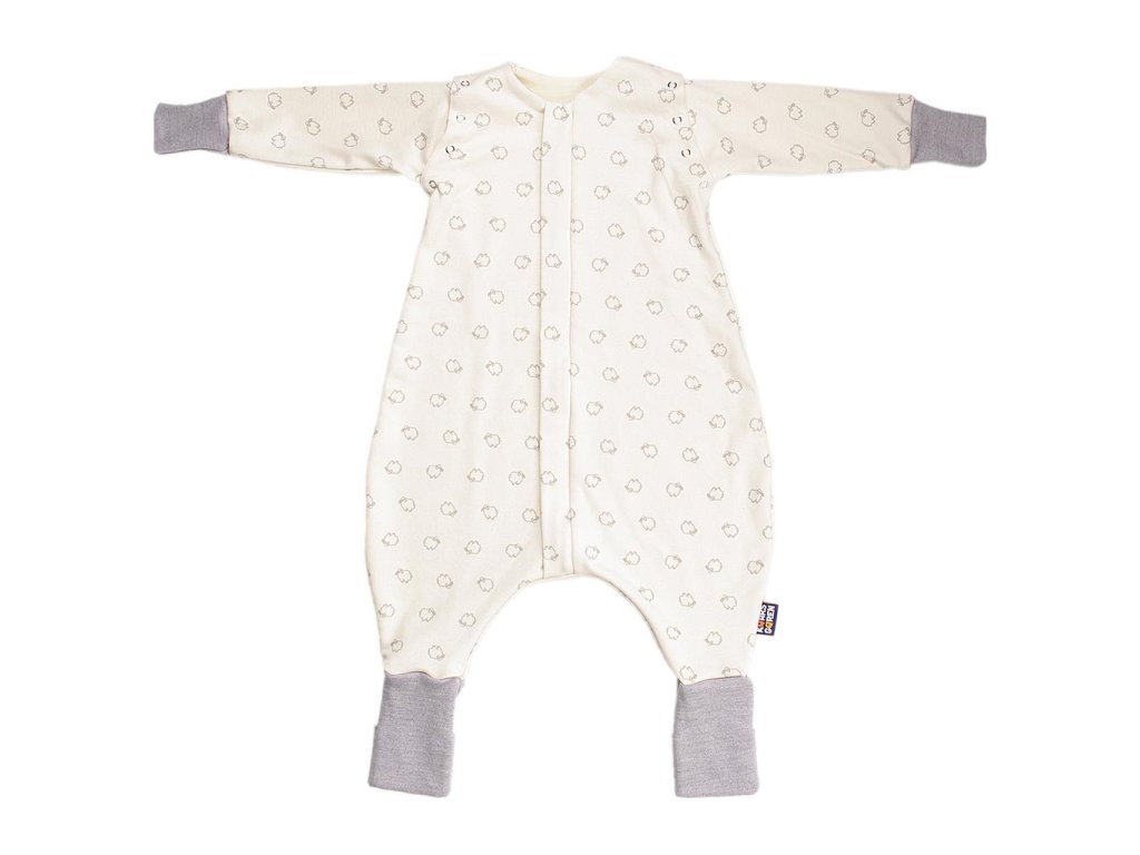 Nožičkový spací pytel s odepínacími rukávy, podšívka je z úpletu z merino vlny. Vnější strana je ze 100% bio-bavlny s motivem beránků. Délka spacího pytle je 60 cm - to je délka miminka od ramen ke kotníkům. Zip umožní otevření spacího pytle po celé délce v obou směrech a má látkovou krytku, která zabraňuje přiskřípnutí krku do zipu. Rukávy se připínají pomocí druků. Ruční praní do 30 °C. Nepoužívat aviváž! Česká výroba.