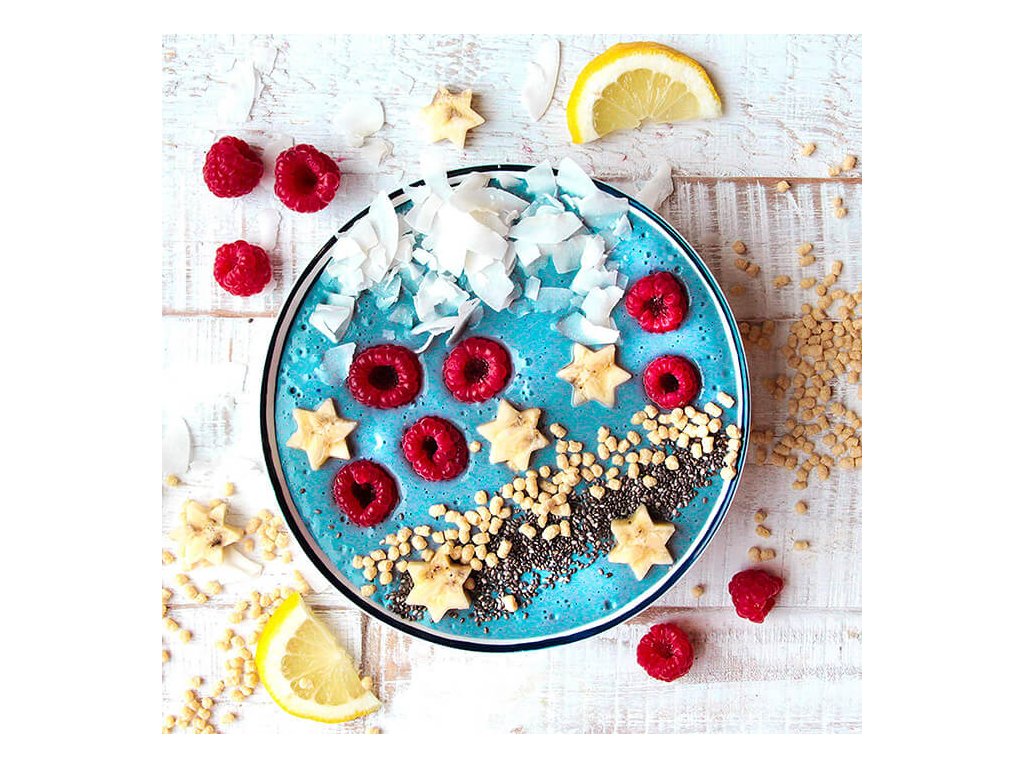 Modrá spirulina je přírodní extrakt ze sladkovodních řas, který se vyznačuje svým ohromujícím, zářivě modrým pigmentem. I když tomu lze jen těžko uvěřit, modrá spirulina má skutečně přirozenou modrou barvu. Tento prášek je skvělým zdrojem rostlinných bílkovin.