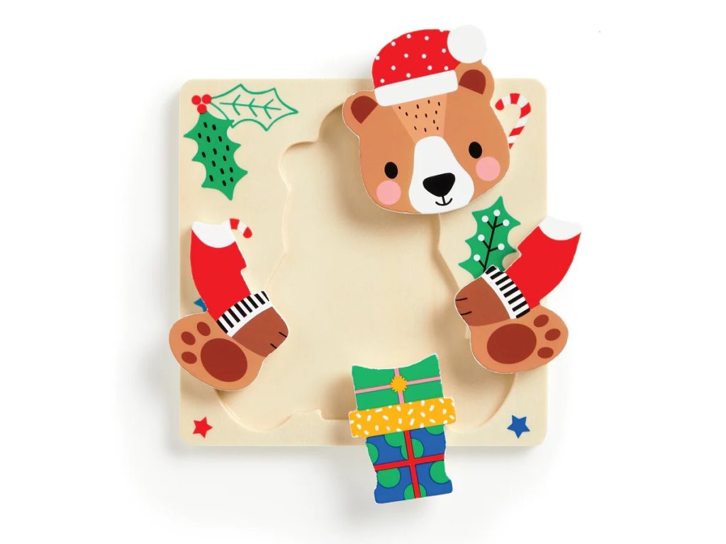 Sada 4 dřevěných puzzle s motivy Vánoc. Dřevěná puzzle pro malé děti pomáhají rozvíjet motorické dovednosti, kognitivní schopnosti, jazyk a paměť. Ideální první dřevěné puzzle pro nejmenší. Robustní vkládací puzzle s velkými dílky ve vánočním designu. Skvělý způsob procvičení jemné motoriky, logického myšlení a poznávání tvarů a barev. Toto dřevěné puzzle pro batolata je dodáváno s hladkou dřevěnou základní deskou s malovanou scénou. Batolata mohou také procvičovat počítání dílků skládačky. Hlavní vlastnosti: 4 puzzle v saděroztomilé vánoční motivyideální velikost puzzle pro batolatarozvíjí jemnou motoriku a zručnostvhodné od 12 měsícůDoplňkové parametry
