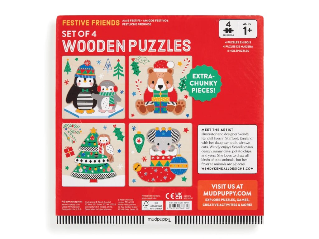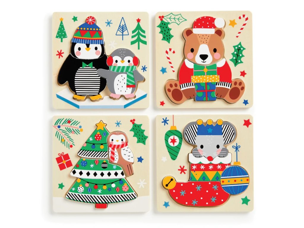 Mudpuppy Dřevěné puzzle sada 4 puzzle Vánoce