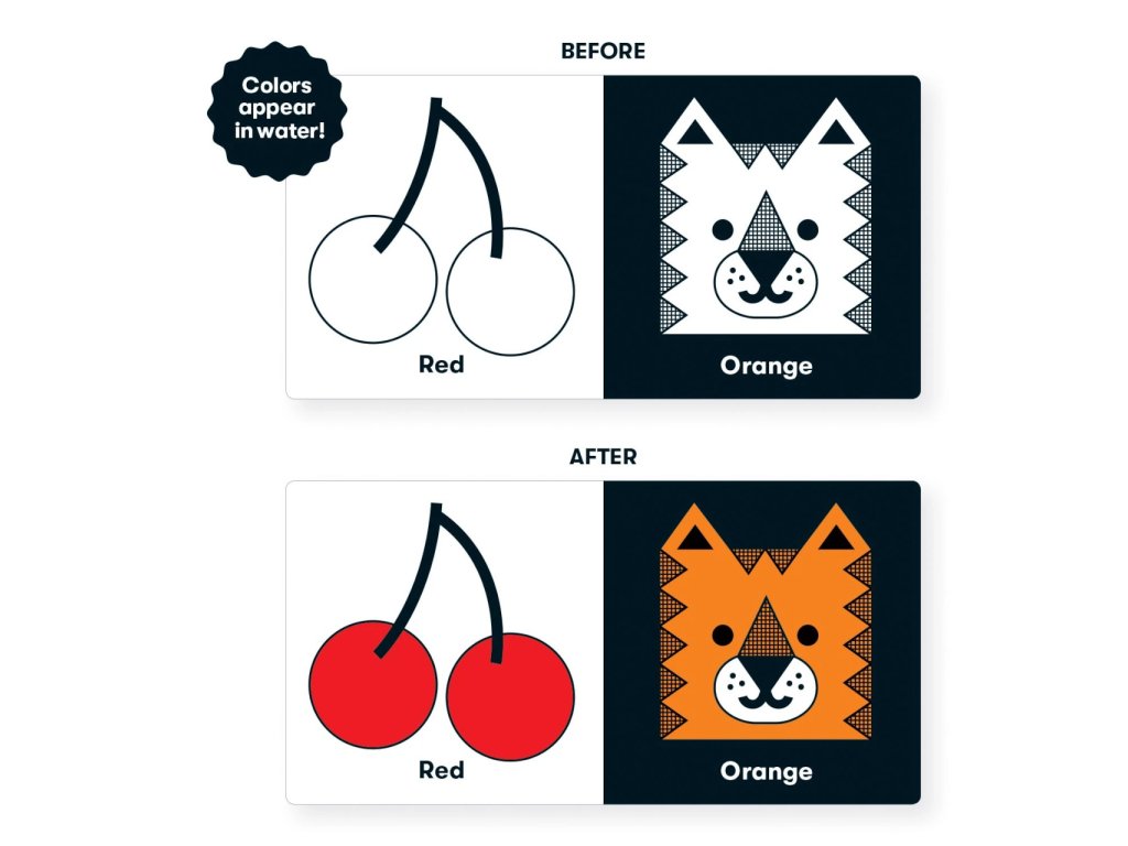 Objevte kouzlo jedinečných hraček ke koupání. Zdánlivě nenápadná obrázková knížka po namočení roztomile ožívá pestrými barvami. Snadno upoutá pozornost dětí a zabaví je při mytí, přitom pomáhá rozvíjet jejich poznávací dovednosti. Proporce hračky jsou zvlášť přizpůsobeny drobným a neobratným dětským ručičkám. Hlavní vlastnosti:6 stran s obrázkyaktivace barev ponořením do vodygrafický návrh The Indigo BuntingDoplňkové parametry
