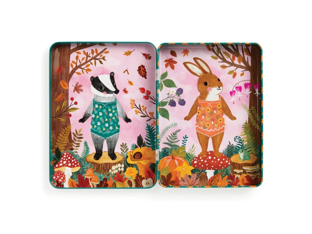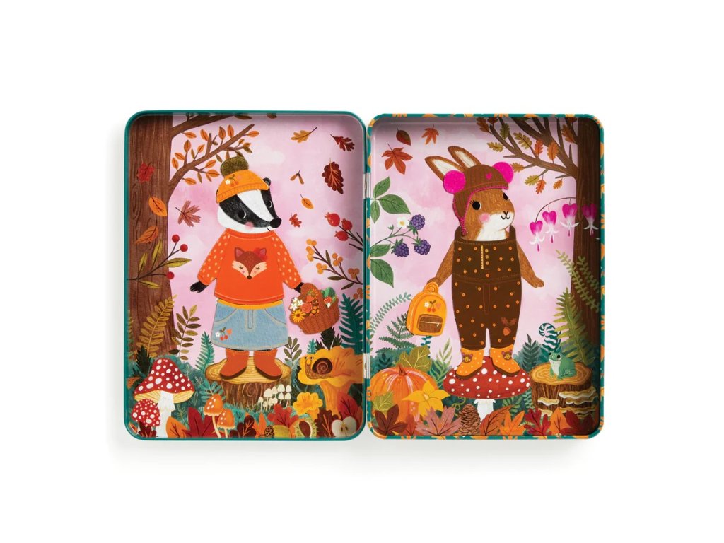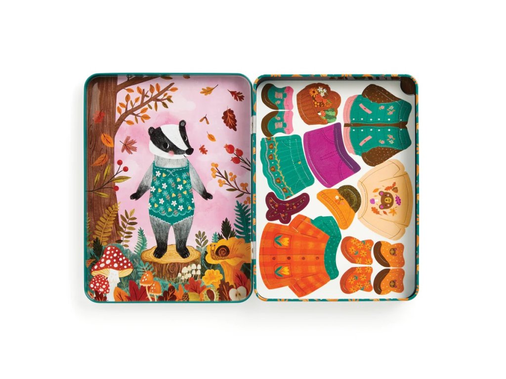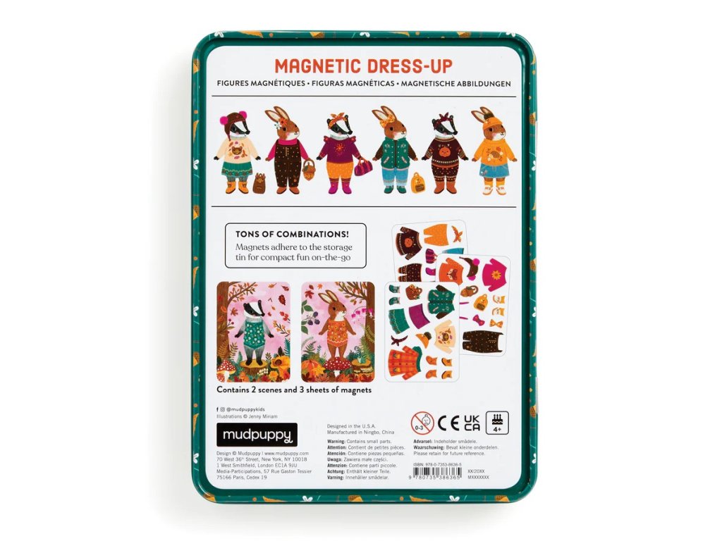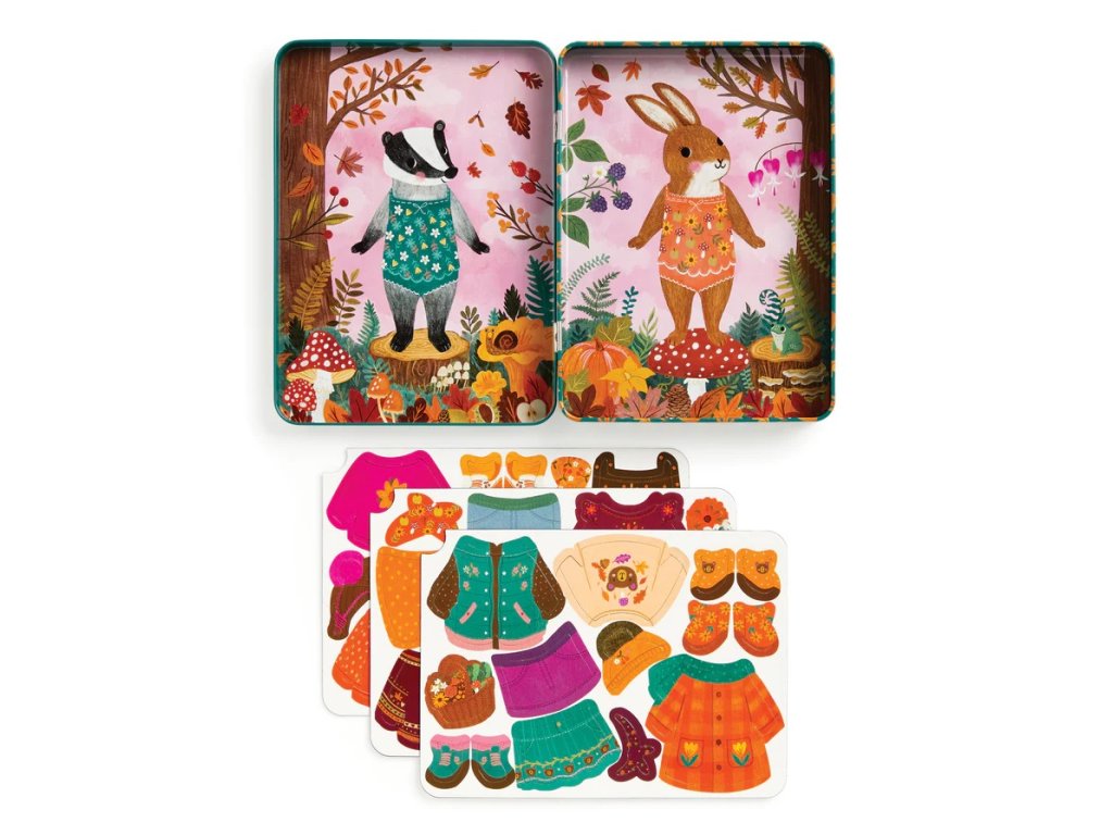Ponořte se do světa módy s touto magnetickou sadou, která byla navržená k tomu, aby inspirovala děti ke kreativitě. Prozkoumejte svůj smysl pro styl a představivost a nakombinujte nespočet módních outfitů dle své vlastní fantazie. Hra obsahuje 2 ilustrované scény na pozadí, v jedné části je zajíc, ve druhé jezevec, a oba čekají na své folklórní oblečení. K dispozici je na 3 kartách 40 magnetů s tematickým oblečením a doplňky. Kombinujte vše dle svých vlastních představ. Vhodné na doma i na cesty. Hlavní vlastnosti: praktická kovová krabička40 magnetů na 3 kartách2 ilustrované scény pozadí se 2 zvířátkysada vhodná pro hru na cestáchDoplňkové parametry