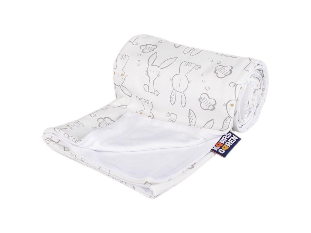 Oboustranná deka z bambusové viskózy a bavlny. Vrchní strana je z bavlny s motivem zajíčků a podšívka je z bambusové viskózy. Velikost deky je 100 x 150 cm. Praní na 40° C. Česká výroba.