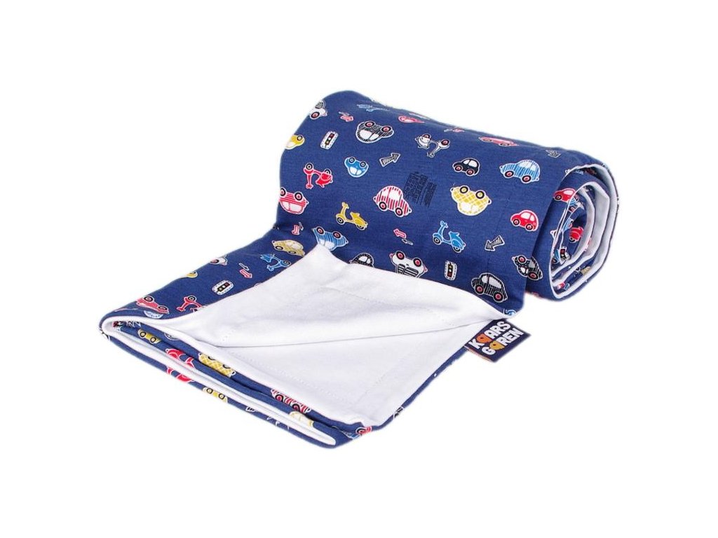 Oboustranná deka z bambusové viskózy a bavlny. Vrchní strana je z bavlny s motivem autíček a podšívka je z bambusové viskózy. Velikost deky je 70 x 100 cm. Praní na 40° C. Česká výroba.