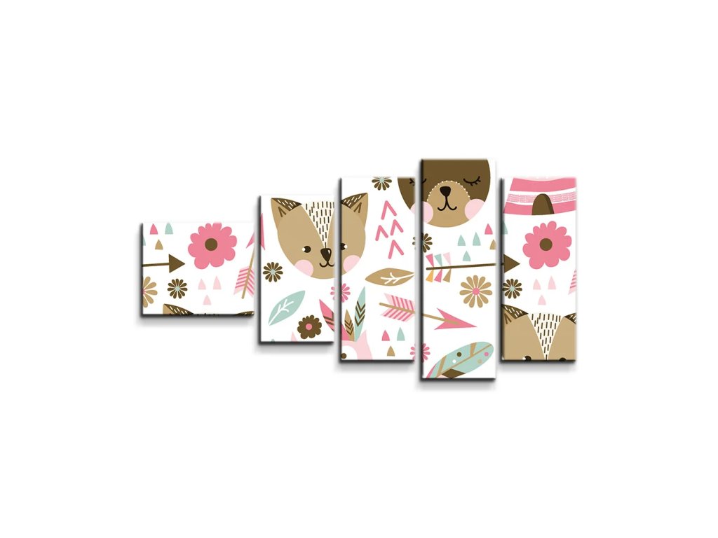 Obraz - 5-dílný Lesní zvířátka - 100x60 cm