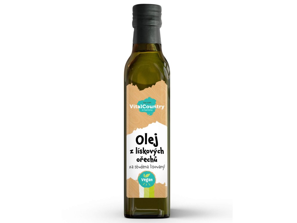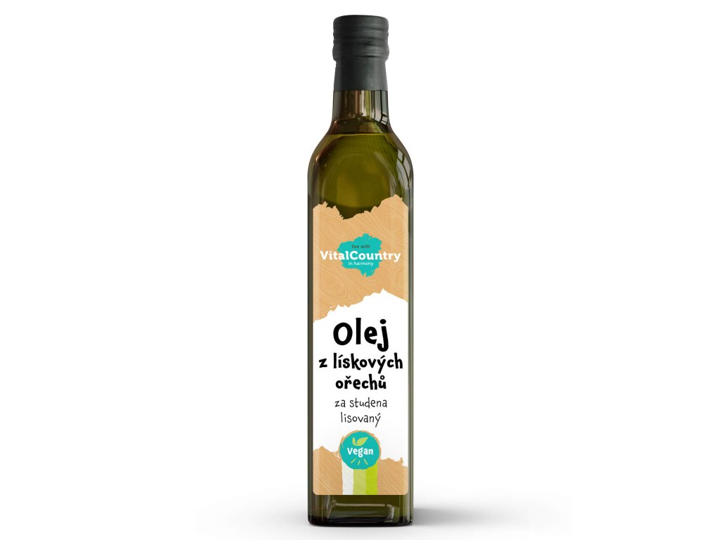 100% rostlinný olej získaný z jader lískových ořechů.