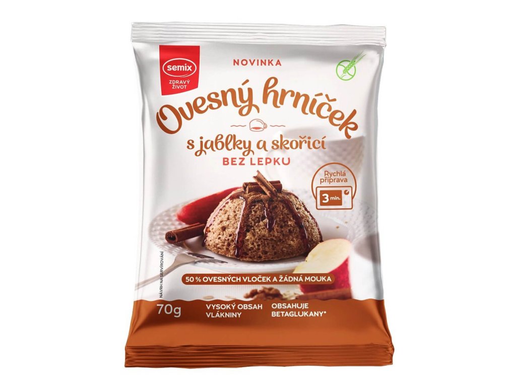 Ovesný hrníček s jablky a skořicí bez lepku je absolutní novinkou na trhu. Také znám pod anglickým názvem oat mug cake. Sypká směs vyrobená z ovesných vloček, bez mouky, tudíž ideální doplněk zdravé výživy.