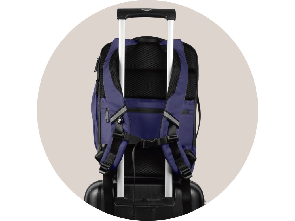 18 litrů, 32 x 42 x 13 cm, ergonomicky polstrovaná záda, reflexní logo a prvky, nastavitelné zapínání na hrudi na klip, dno s nožičkami, z recyklovaného nylonu, voděodolný zip, kapsa na lahev, gumová rukojeť na boku i nahoře batohu, kapsa na laptop