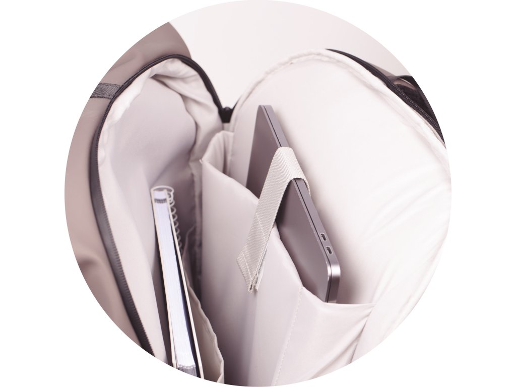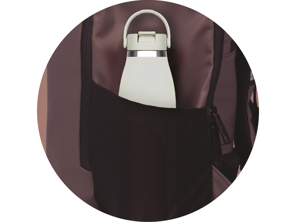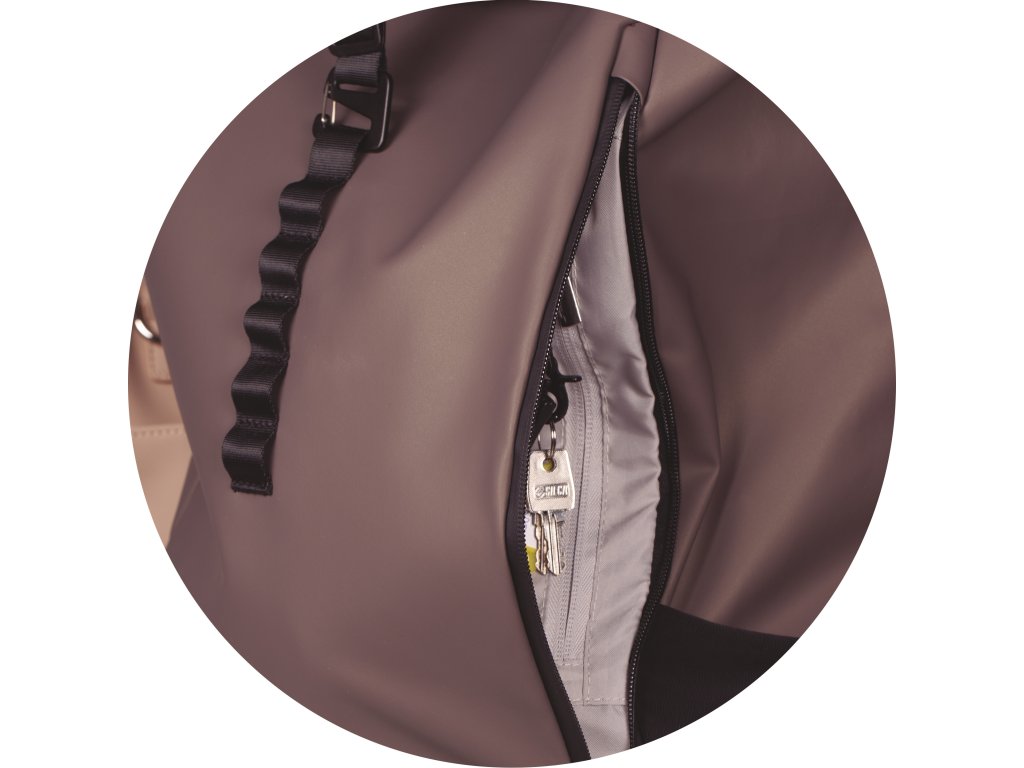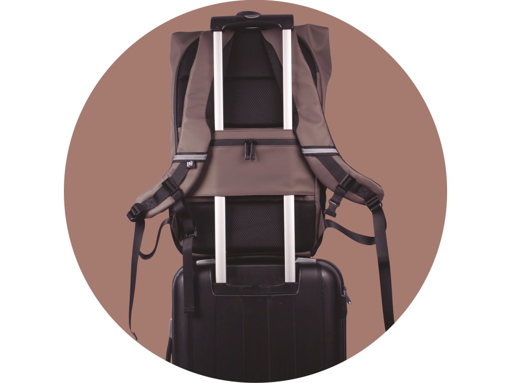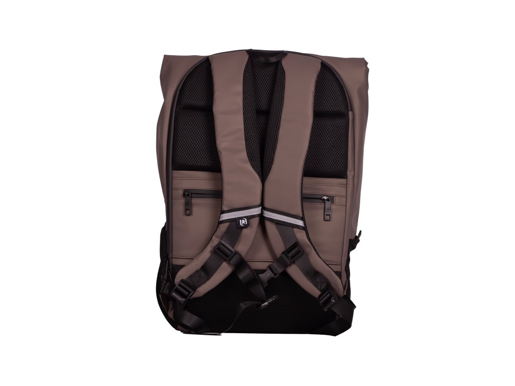 24 litrů, PU, 48 x 32 x 10 cm, ergonomicky polstrovaná záda, reflexní logo a prvky, voděodolný materiál a zip, možnost batoh srolovat pro přizpůsobení obsahu, uzavírání na klip, nastavitelné zapínání na hrudi na klip, kapsa na laptop a na láhev, přihrádka na oblečení a osobní věci, plastové nožky zespodu batohu