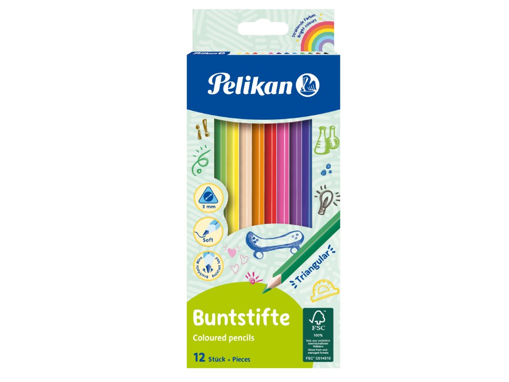 ergonomické, trojhranné, lakované, měkké, průměr tuhy 2,9 mm, odolné proti zlomení, jasné barvy, lesní certifikace FSC, na blistru